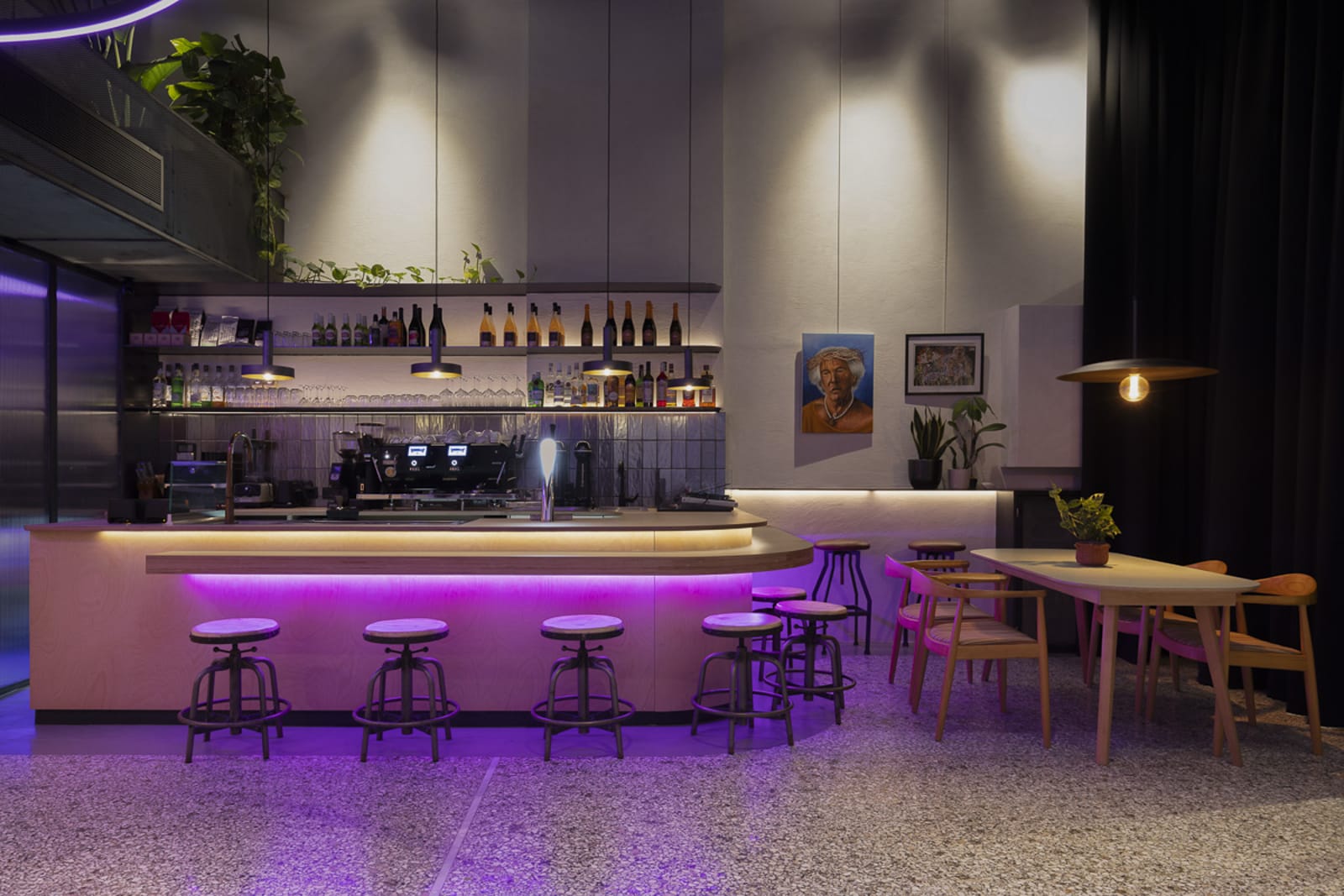 Calibra, a new Urban hub in Votanikos, was conceived to operate on two levels: as an autonomous hub and bar, and simultaneously as an extension of the ISON Theatre, Athens’ first space dedicated to inclusive education and artistic practice for both disabled and non-disabled artists.