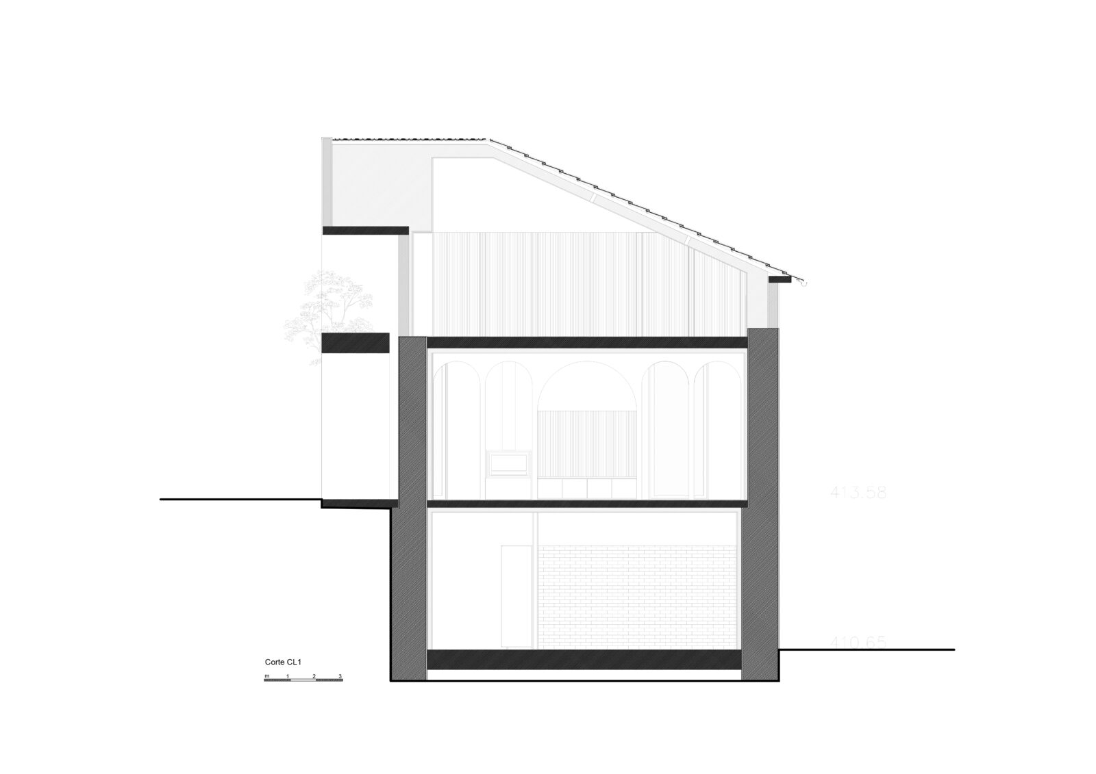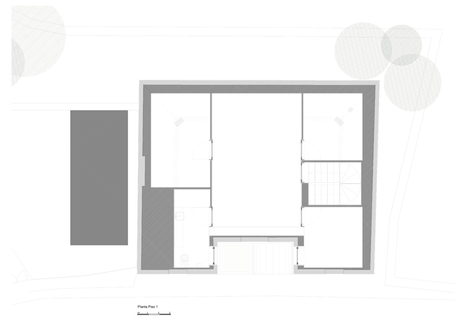 The upper floor consists of a central office, support room, sanitary installation and storage. On the lower floor, semi-buried, there are two bedrooms, a bathroom and a laundry room. On these floors, for private use, tranquillity reigns through natural northern light. A light, faint, constant, synonymous with serenity.