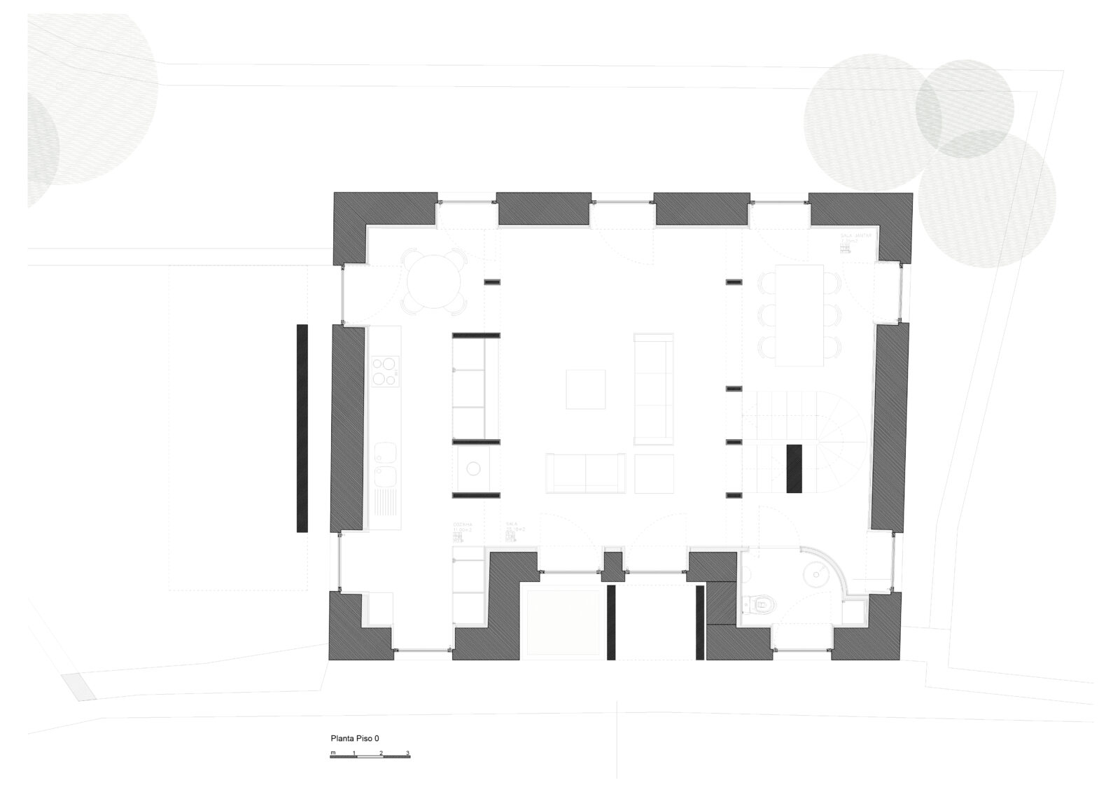 Through form, the arch, an element used in history as an element of art, we organize the space and create a new habitation and new sensations. The ground floor, entrance floor, consists of a single space, subdivided by two arcades. This gives rise to 3 spaces for different uses. These elements allowed a single space to provide three interconnected but diverse moments of living – Kitchen, Living Room and Dining Room.