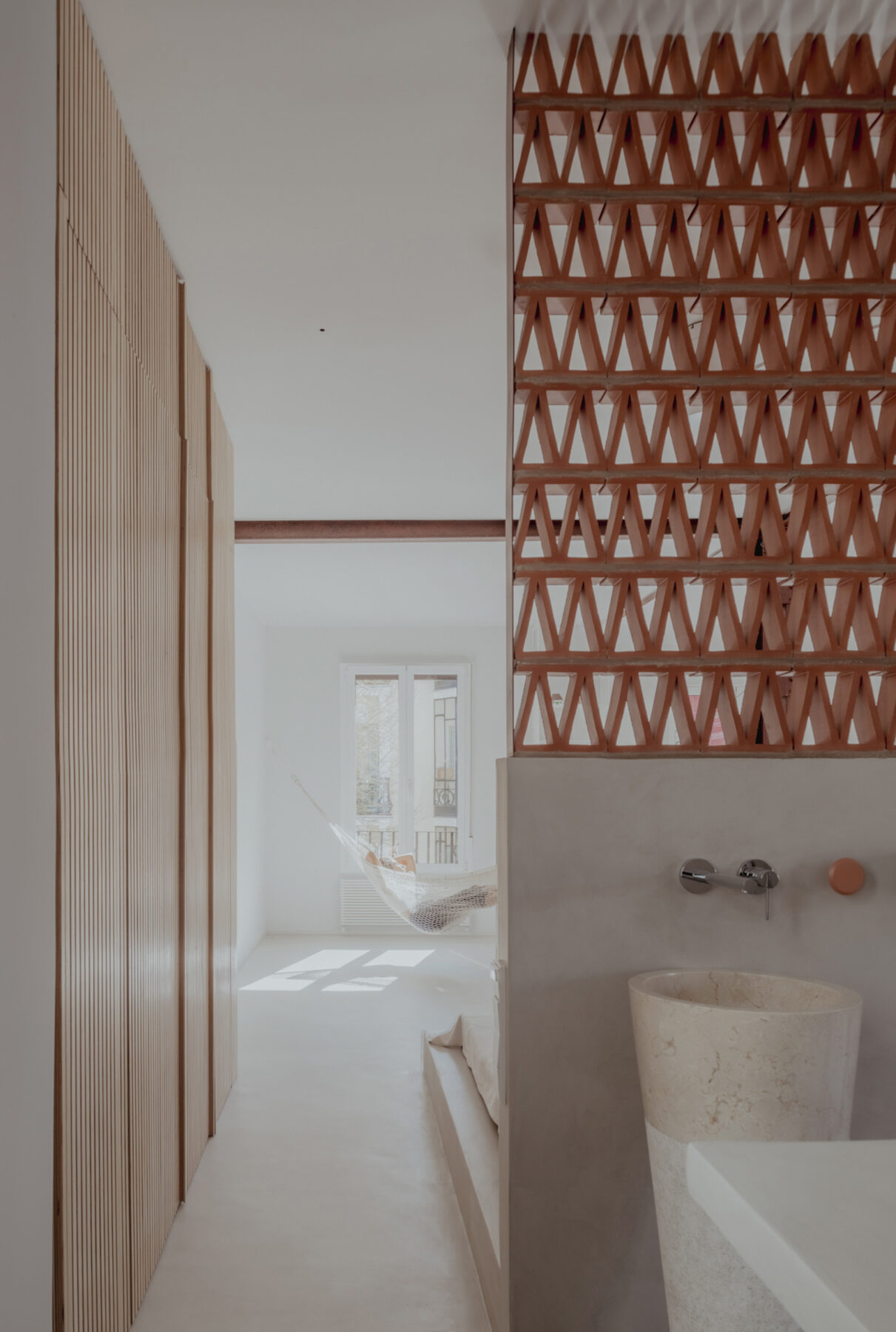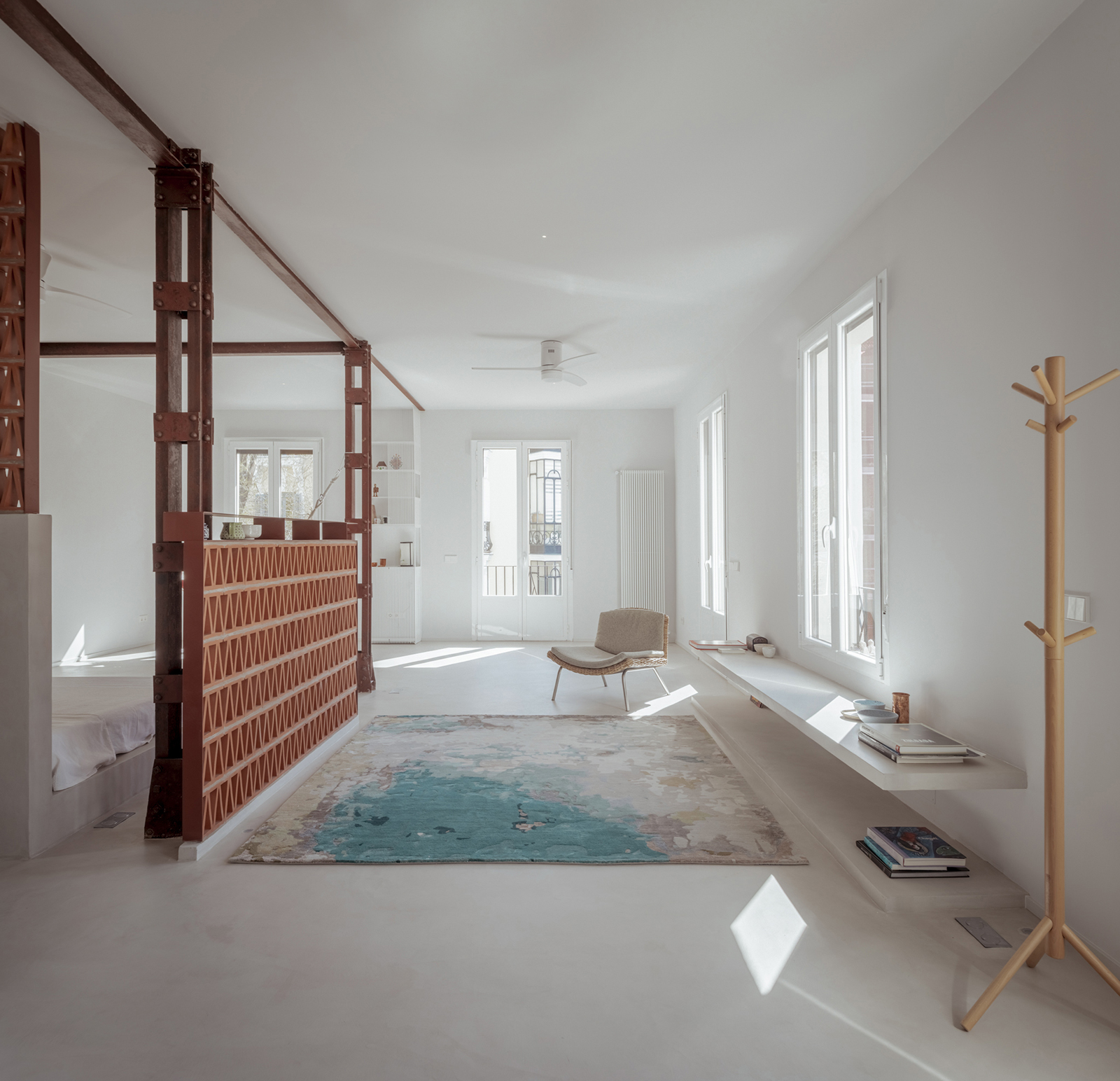Casa Pez in the centre of Madrid by idearch-studio, explores how light invades in the apartment and uses this effect through filters and transparencies to establish a natural and calm feeling.