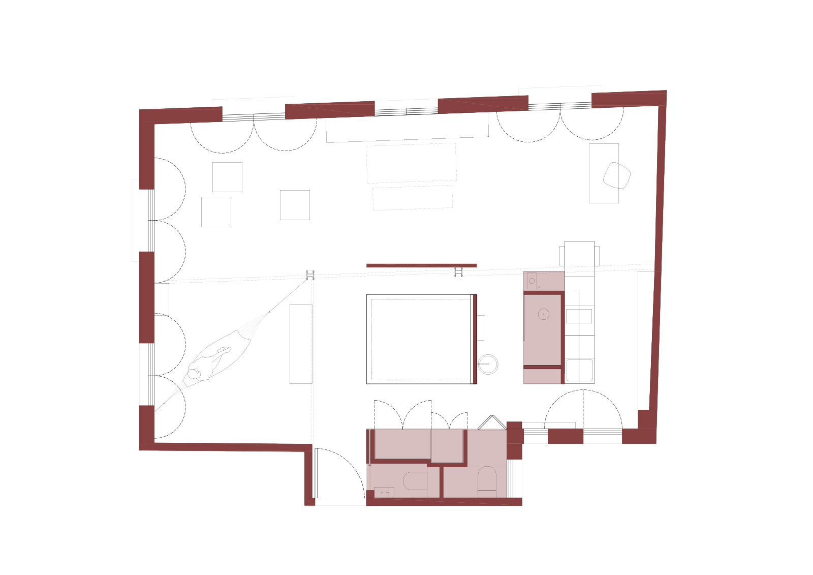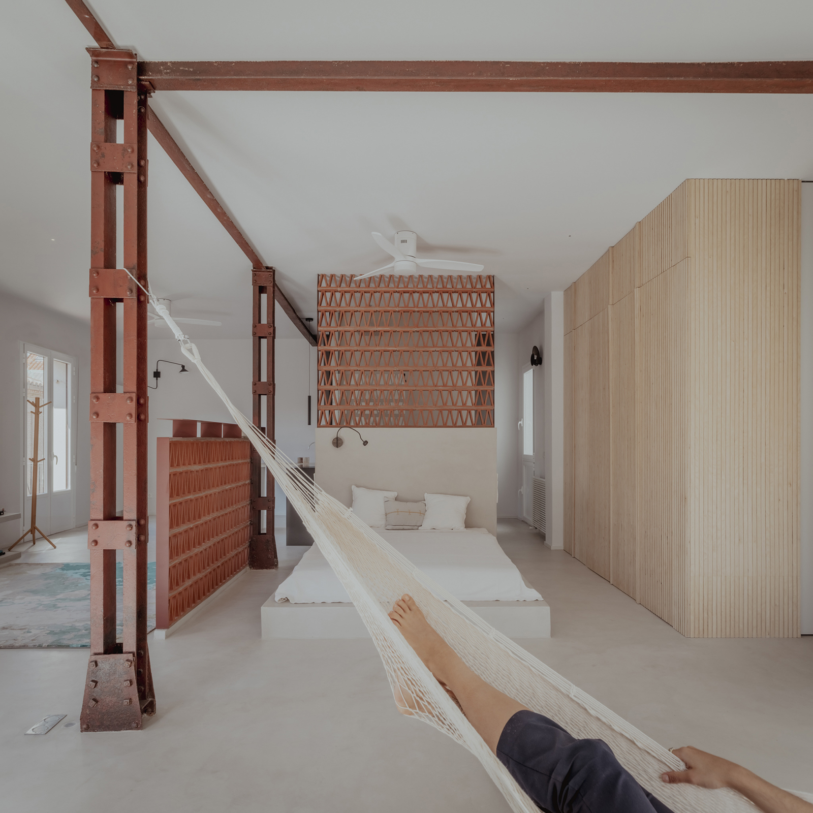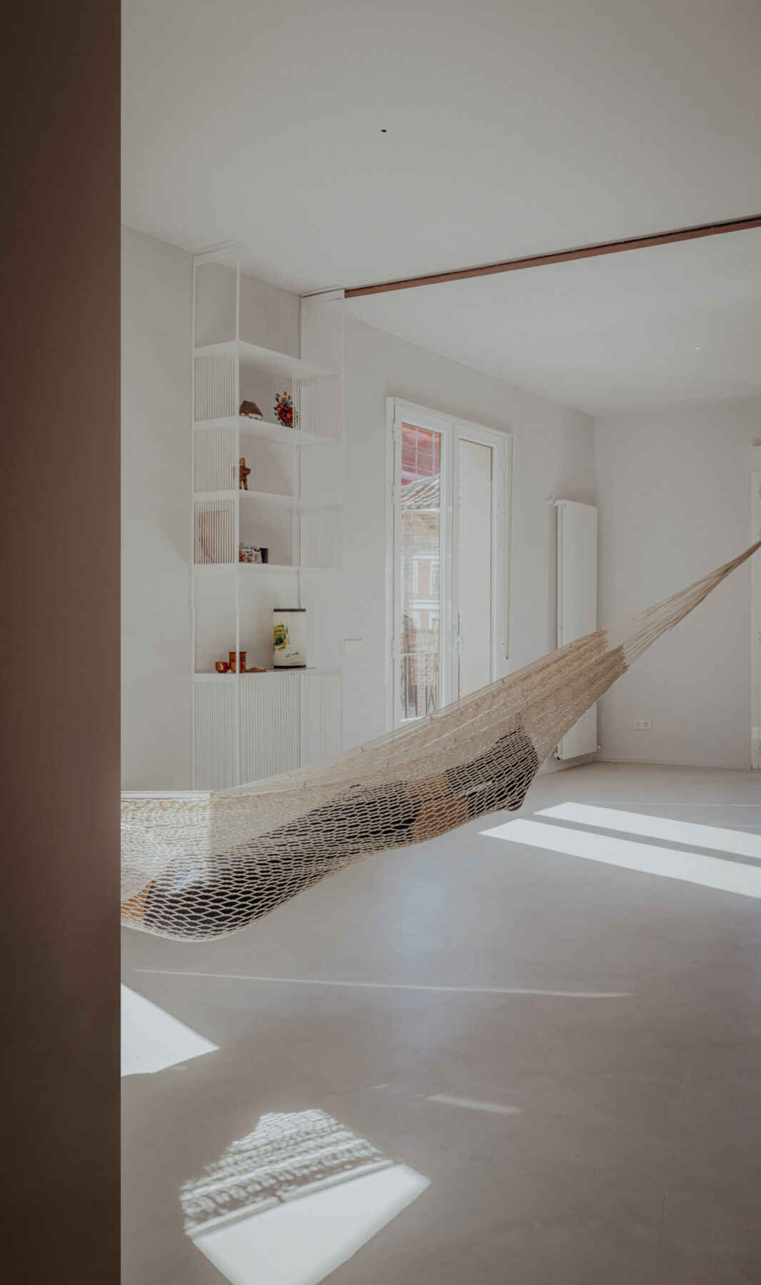 Artificial light is carefully selected to generate direct light or dim light as appropriate. Several fans provide freshness. A hammock fills the living room, it moves away when it’s time for a yoga session, you can breathe nature, and the client feels like they’re in a little piece of Mexico…