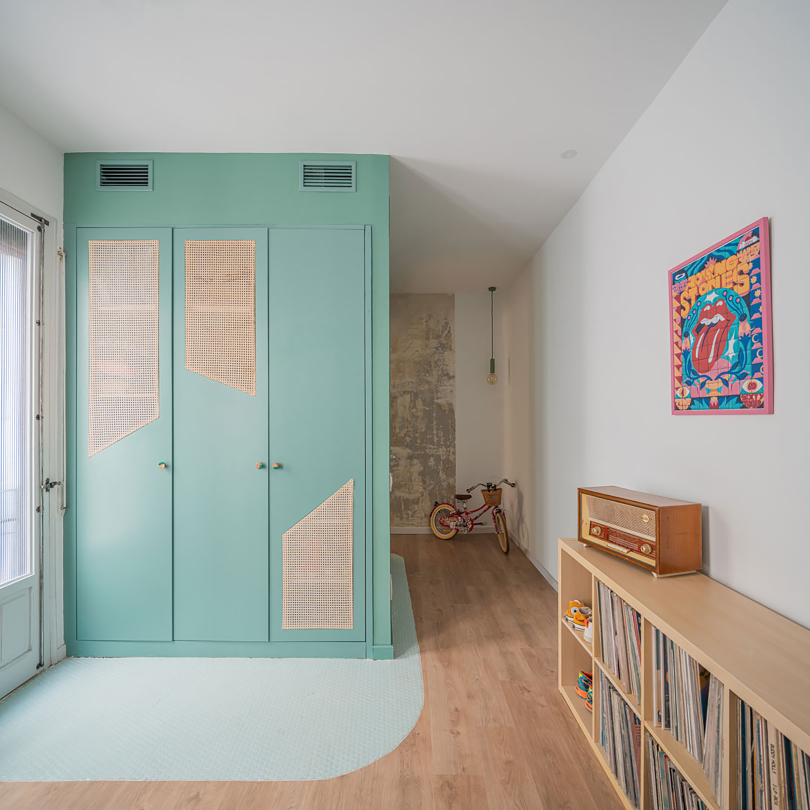 Casa Roc accompanies its resident’s wanderings in search of inspiration. Colours and decorative items give rythme to the interior renovation of an existing 19th century apartment, created by Cumulolimbo Studio in Madrid, Spain.