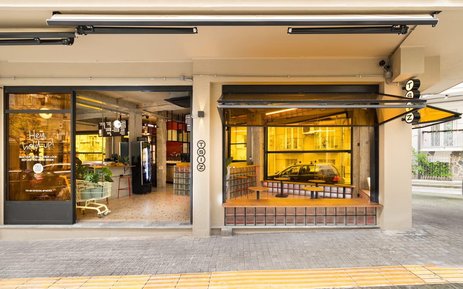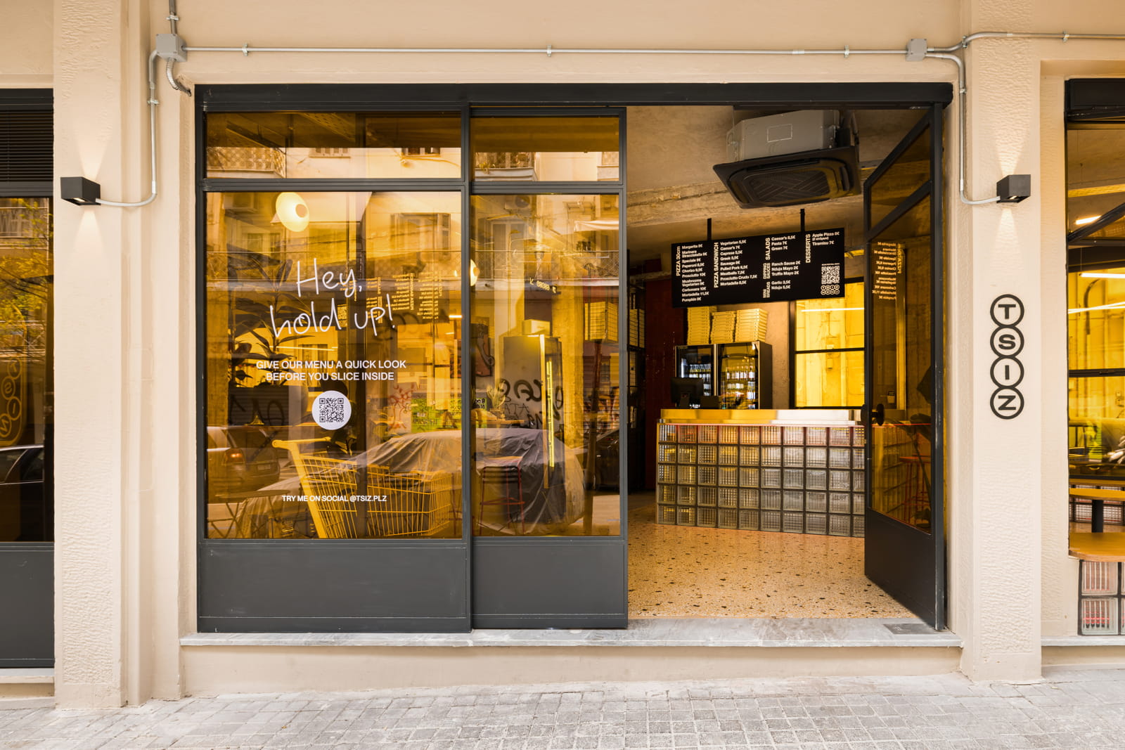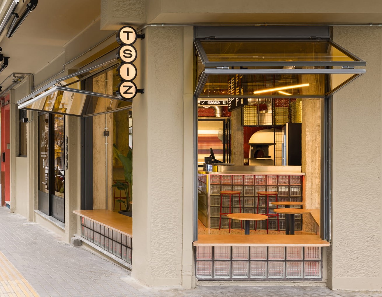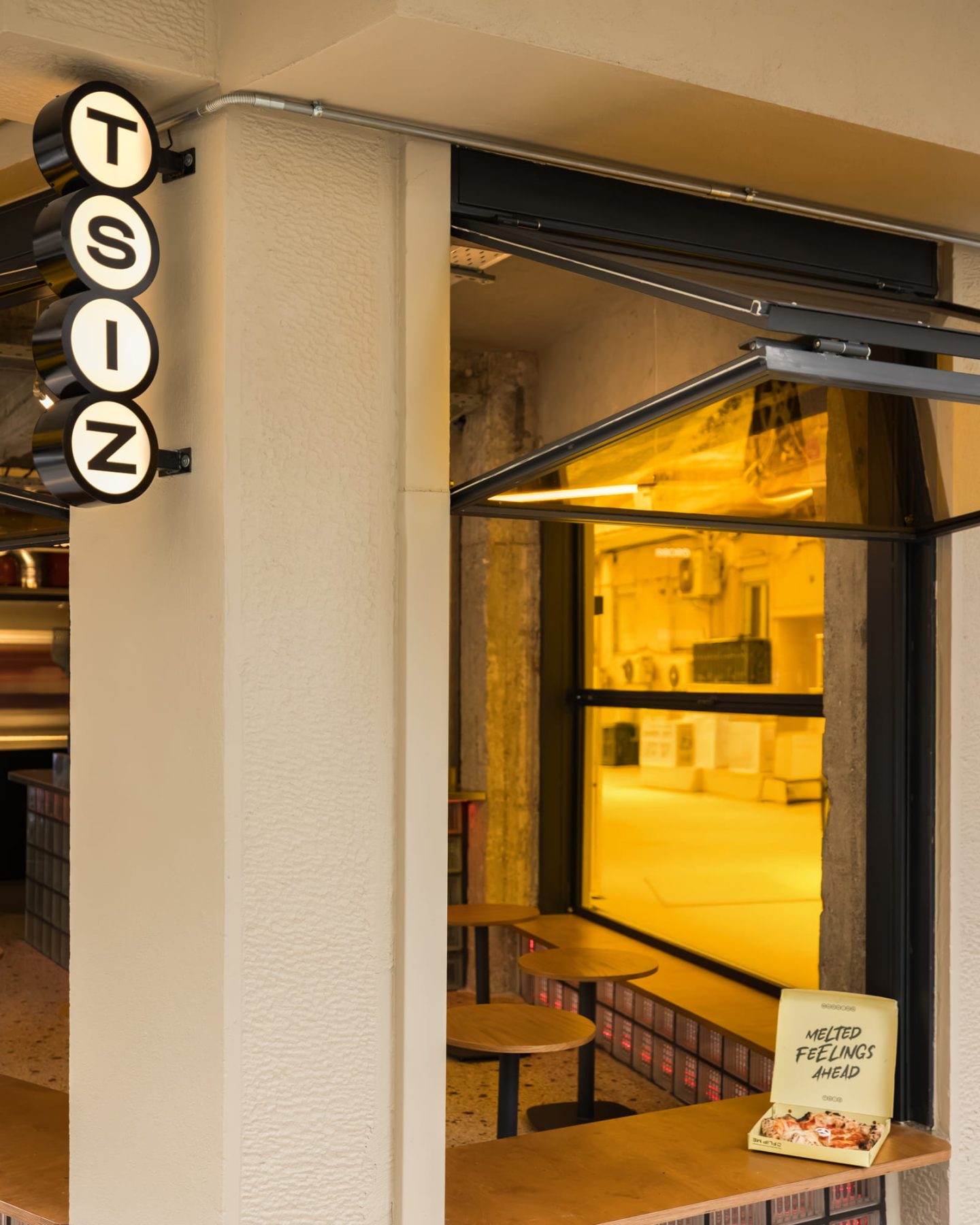 TSIZ operates at the intersection of takeaway and sit-down dining, redefining the contemporary pizza bar through an architectural approach grounded in transparency and spatial continuity.