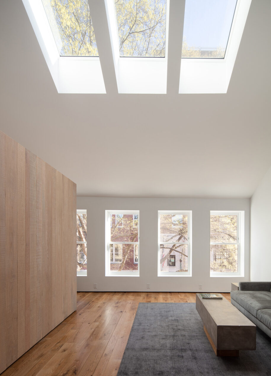 Transparency from front to back is a key design intent, establishing visual access to the street trees in front and sunlight in the back. Multiple modes of direct and indirect natural lighting animate the space.