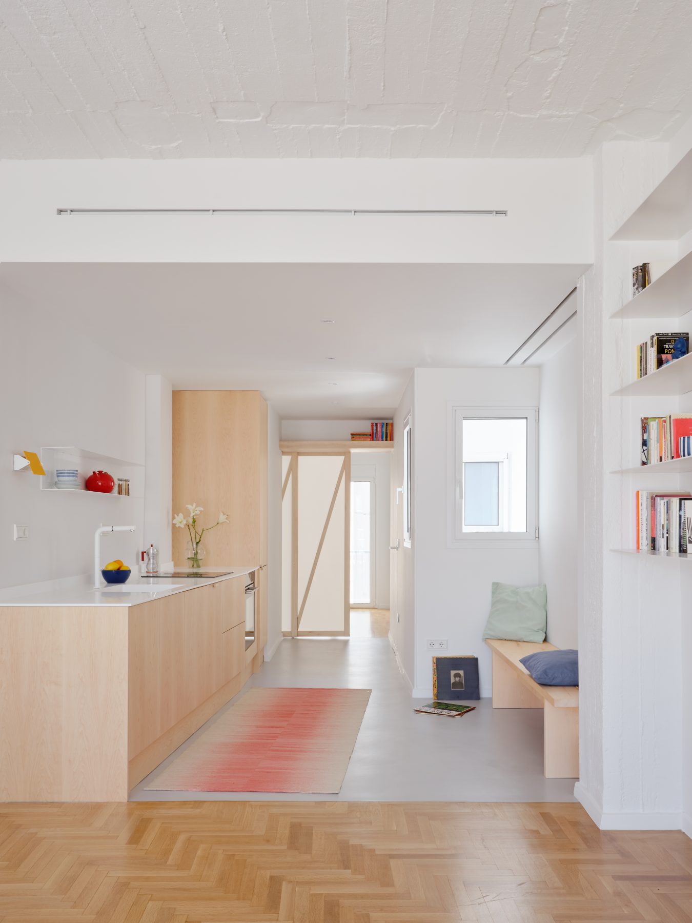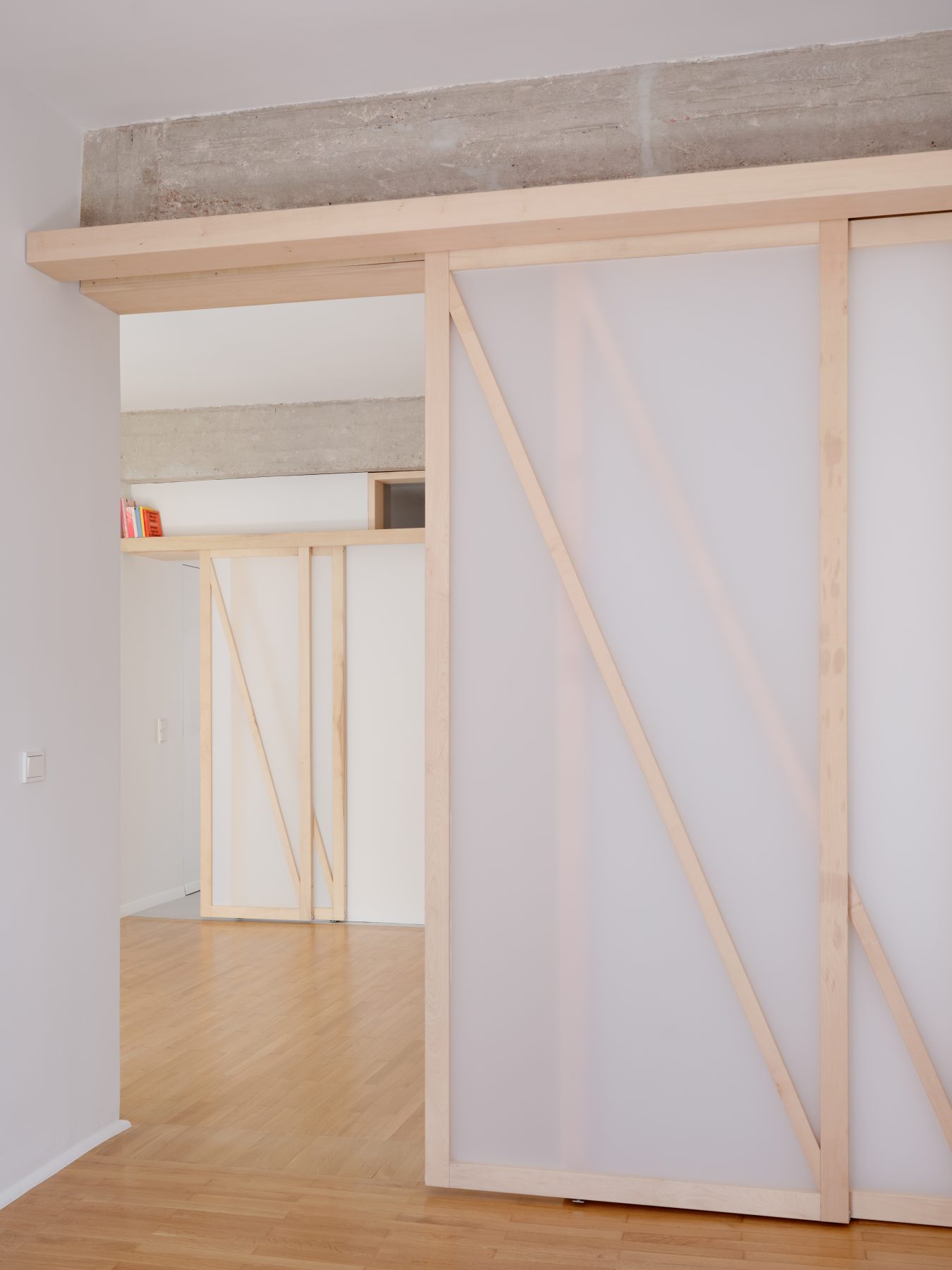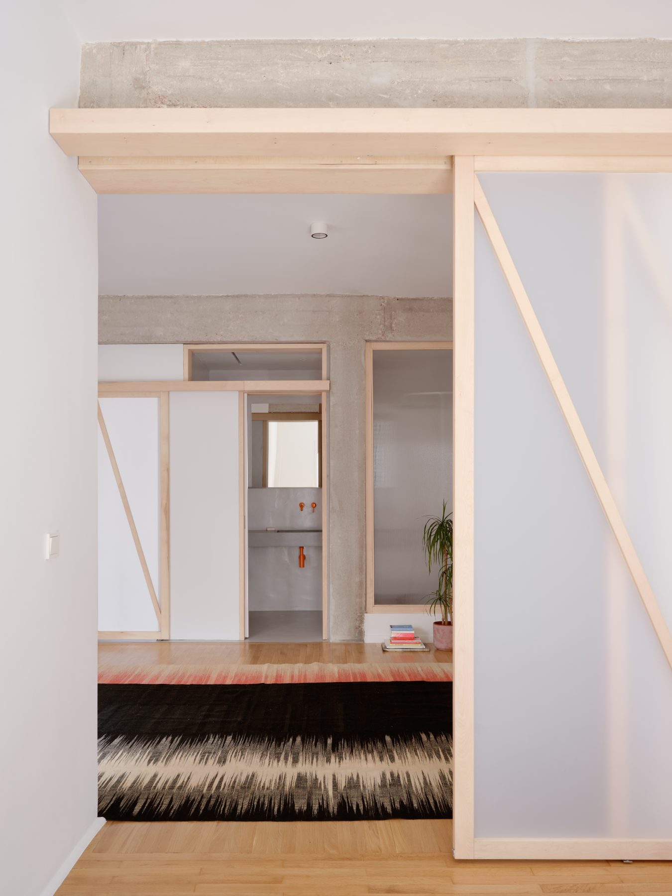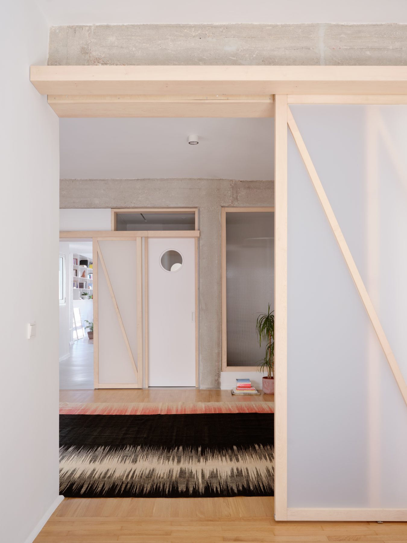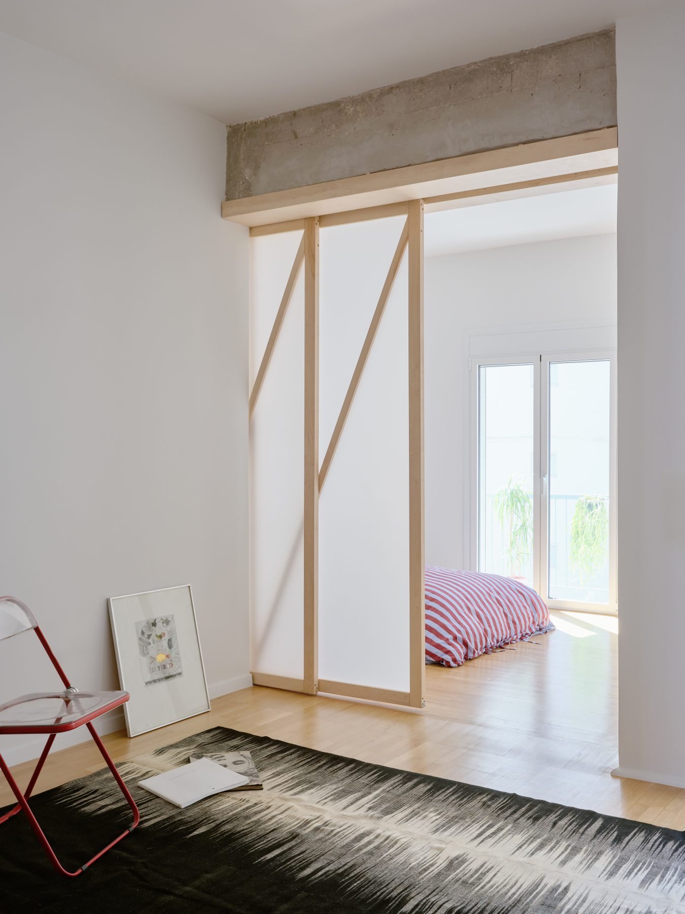 But, how? All non-load-bearing opaque walls were removed and replaced by custom-made translucent sliding panels based on the philosophy of Japanese shoji partitions.