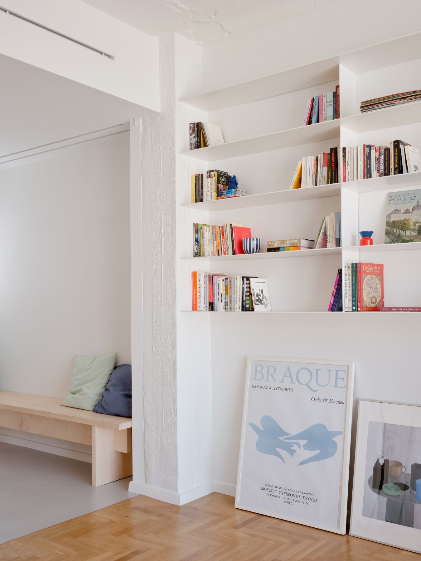 F&P apartment in Exarcheia is a study to soft minimalism where the concrete meets the wood, the light its shadow, and the white gets bolder than blue.