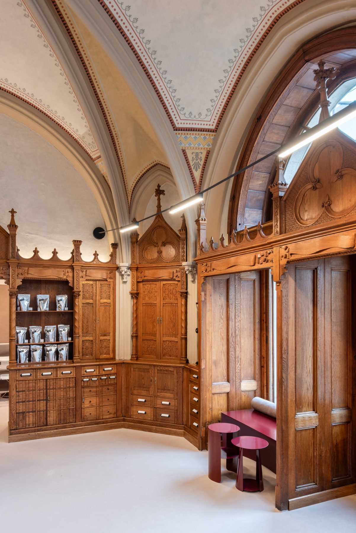 The introduction of the new programme — a specialty coffee shop — was conceived as a responsive layer, attentive to the spatial and historical qualities of the interior.