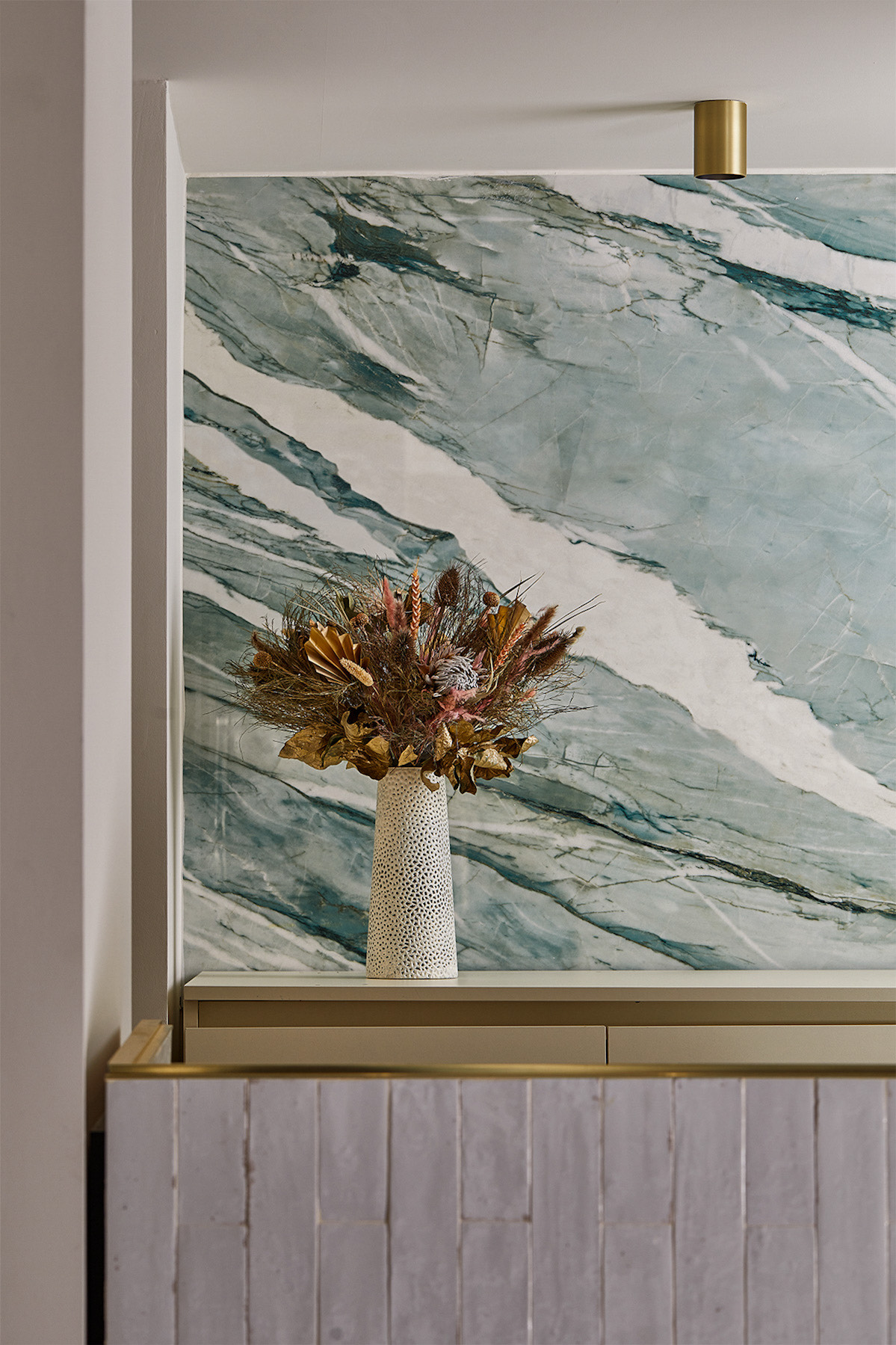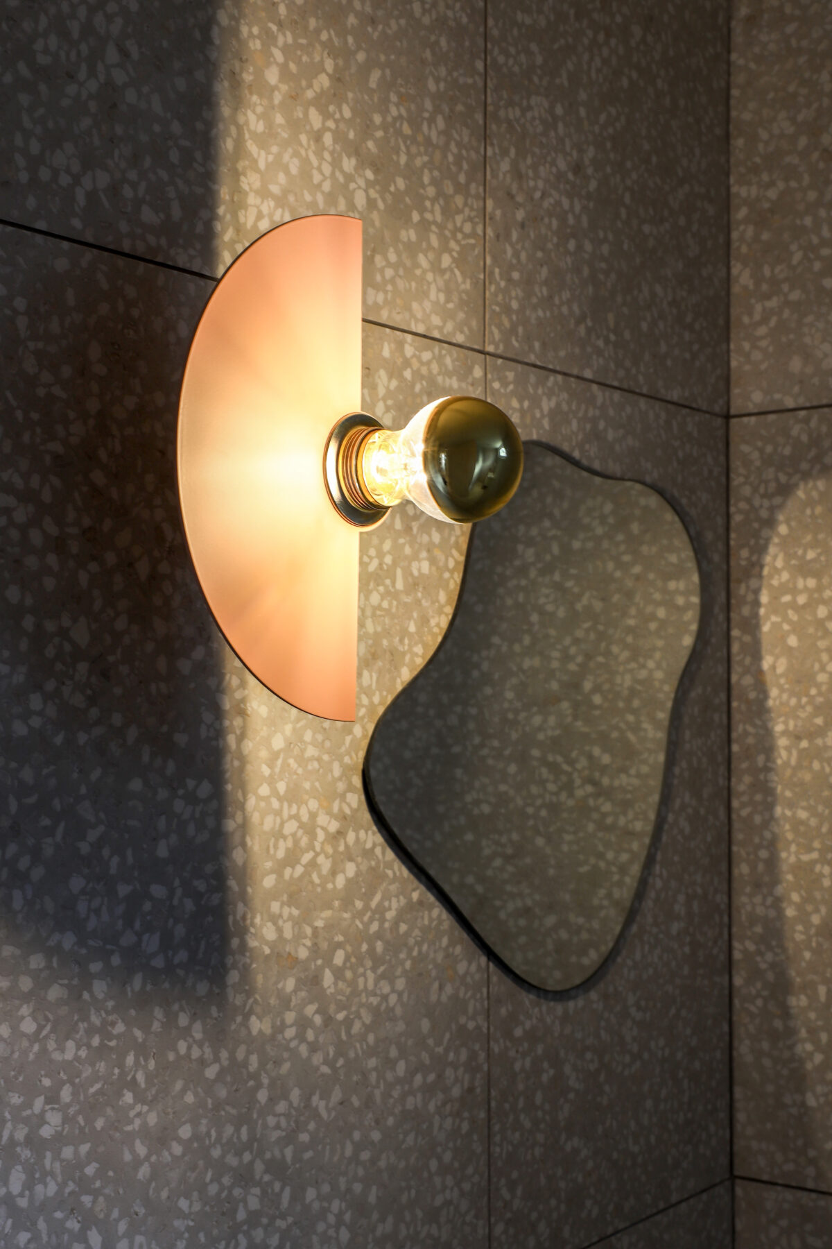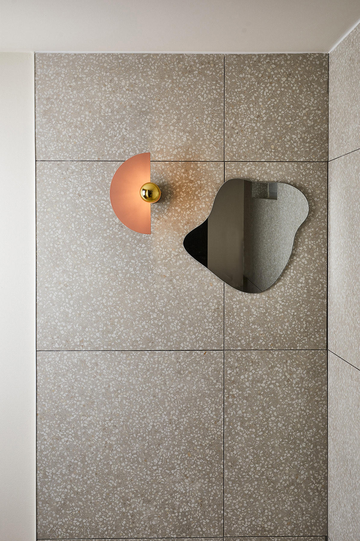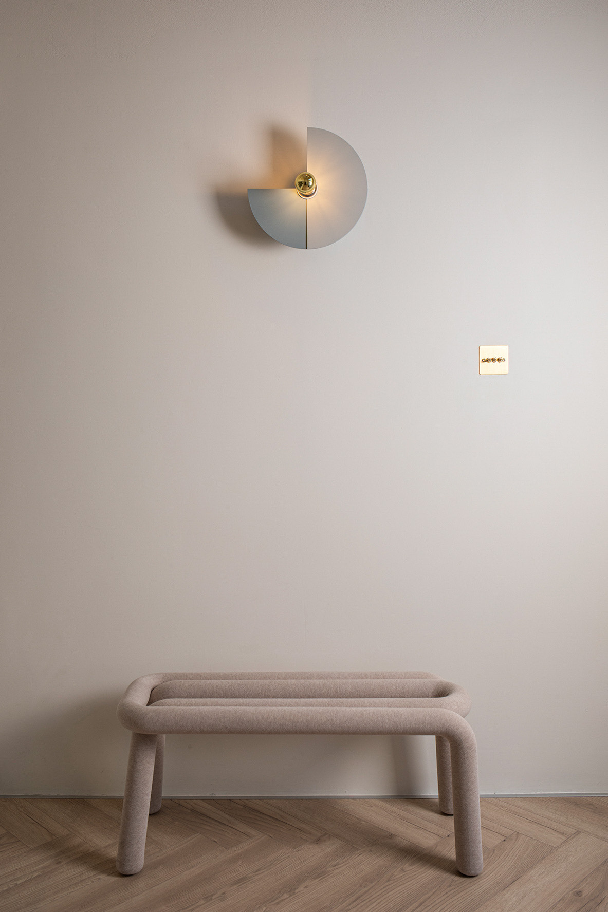 In this soft and calming environment STUDIOADCH drew inspiration from the symmetrical and repetitive elements of the Italian rationalist movement to create a set of illuminated arches as a reference to the repetitive-everyday commitment of the brand to serve healthy-all natural snacks to its clients.