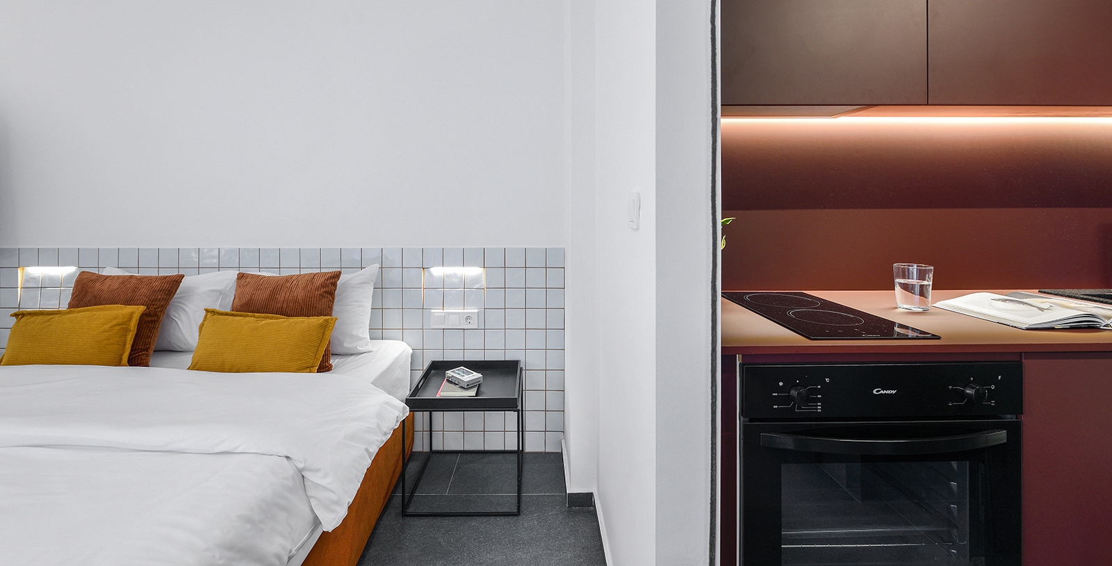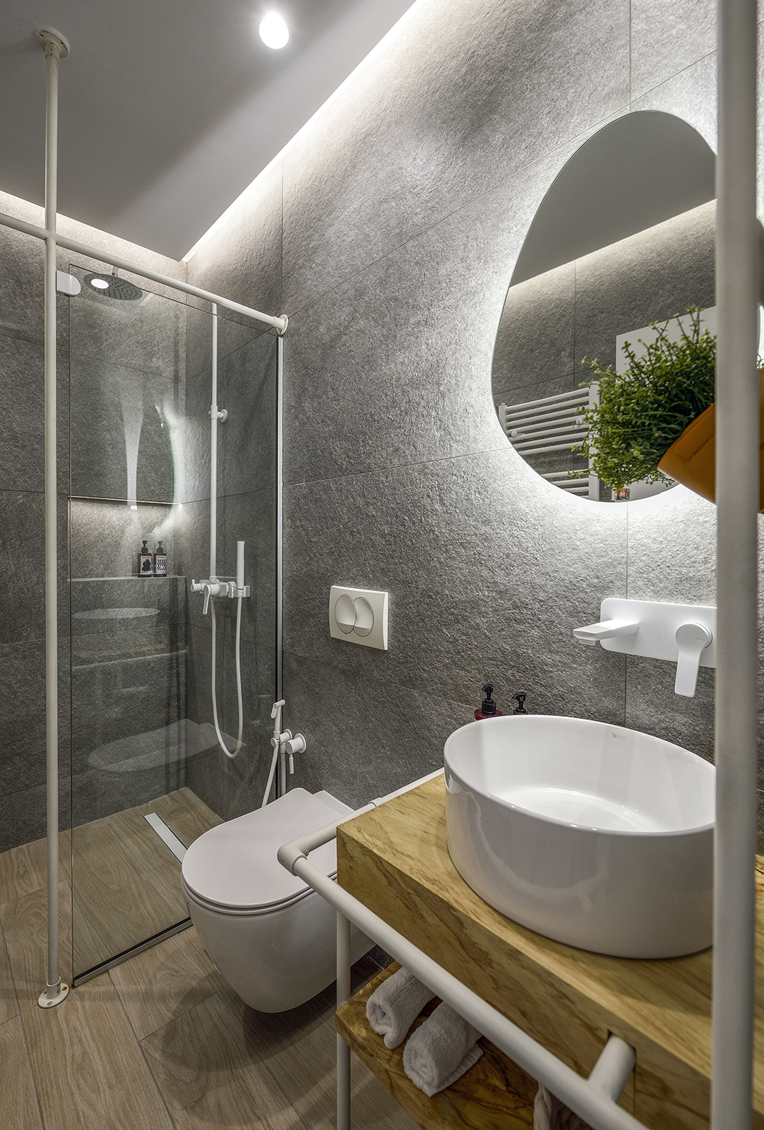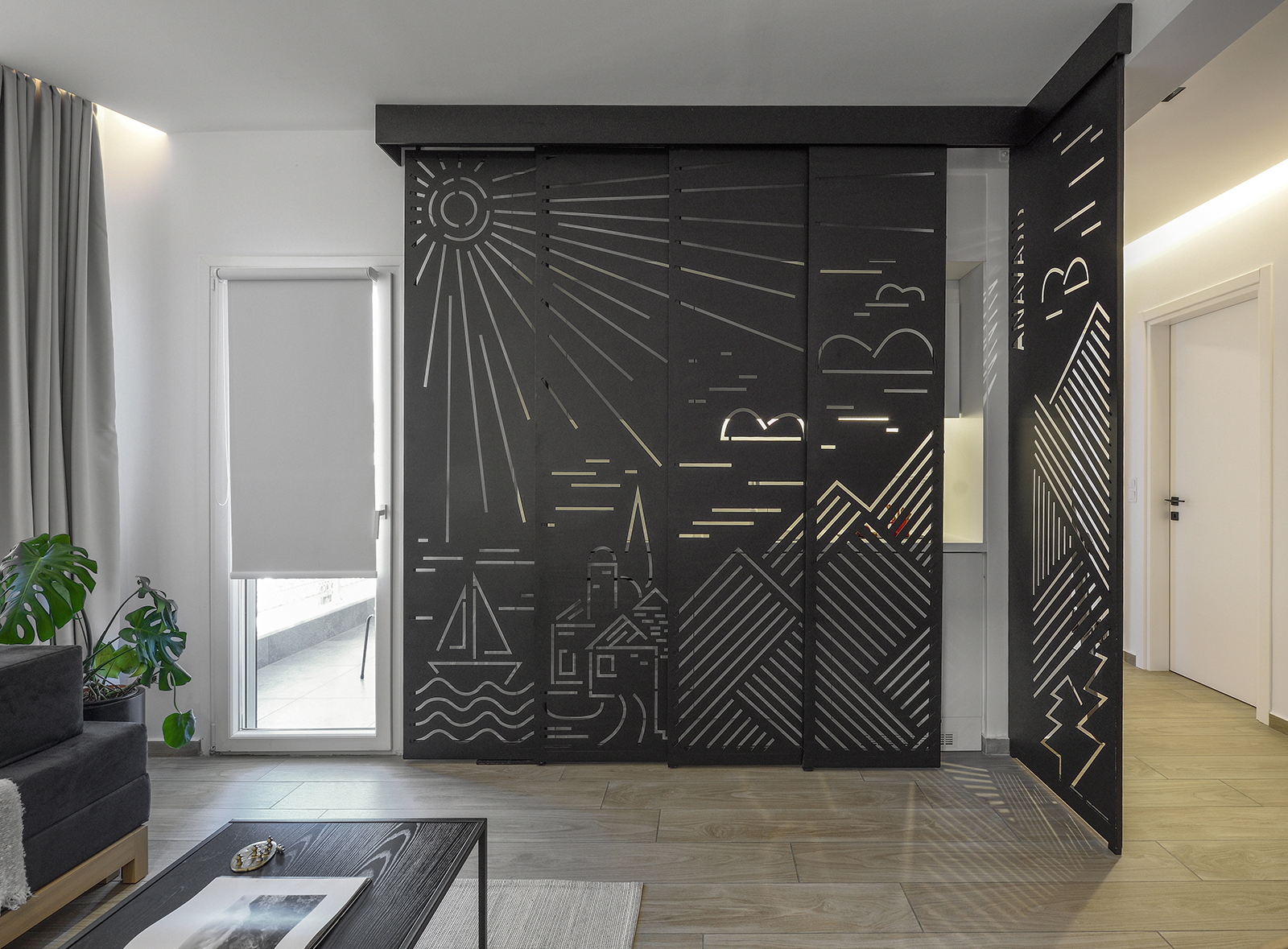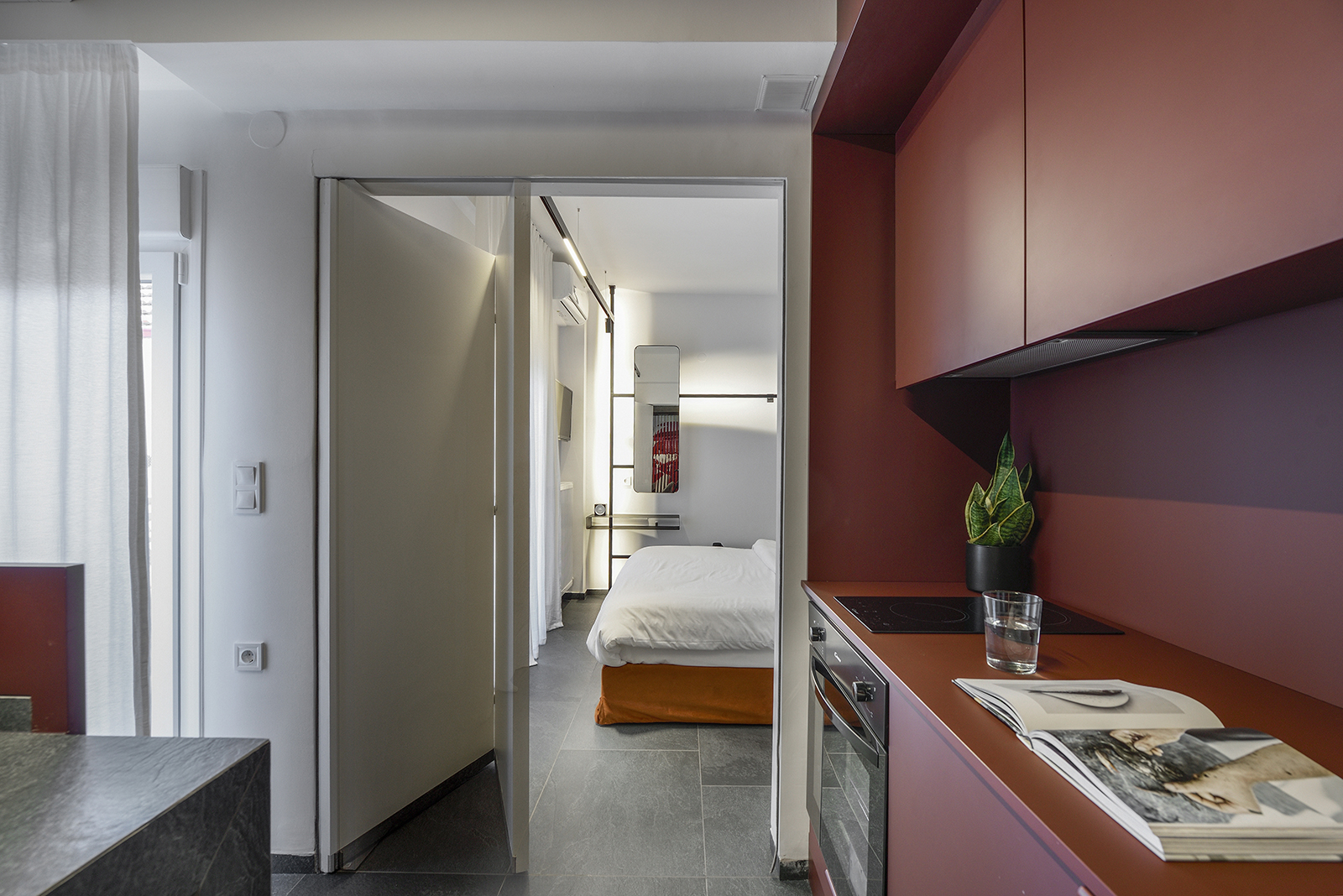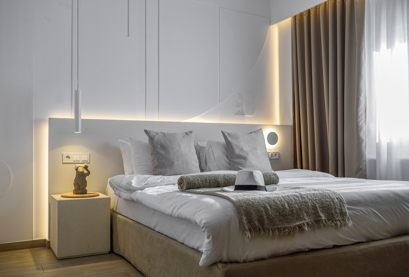 The design is based on the concept of narrative architecture, where every element of the space tells a story. By using modern materials with a traditional expression, the composition evokes a sense of familiarity and timeless durability. Each apartment narrates a different story, from the first ascent of Mount Olympus in 1913 and the traditional “Belitikos” dance, to the Byzantine ritual of Sichna.