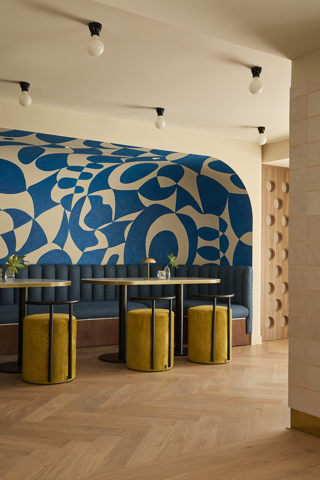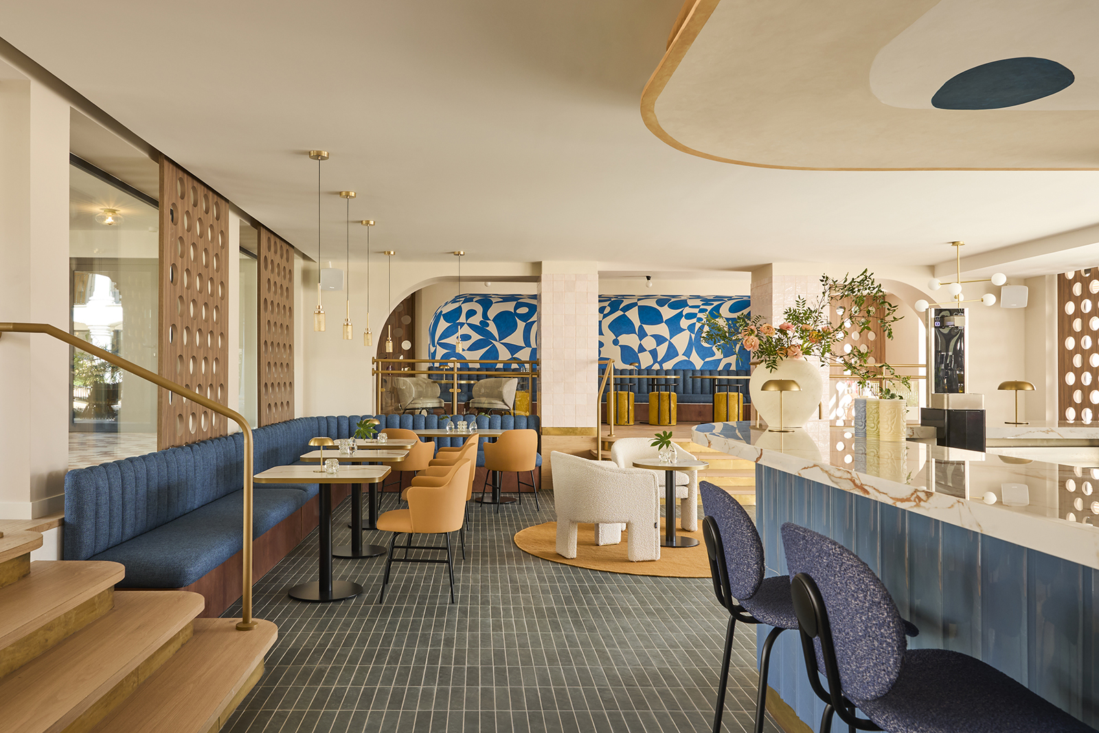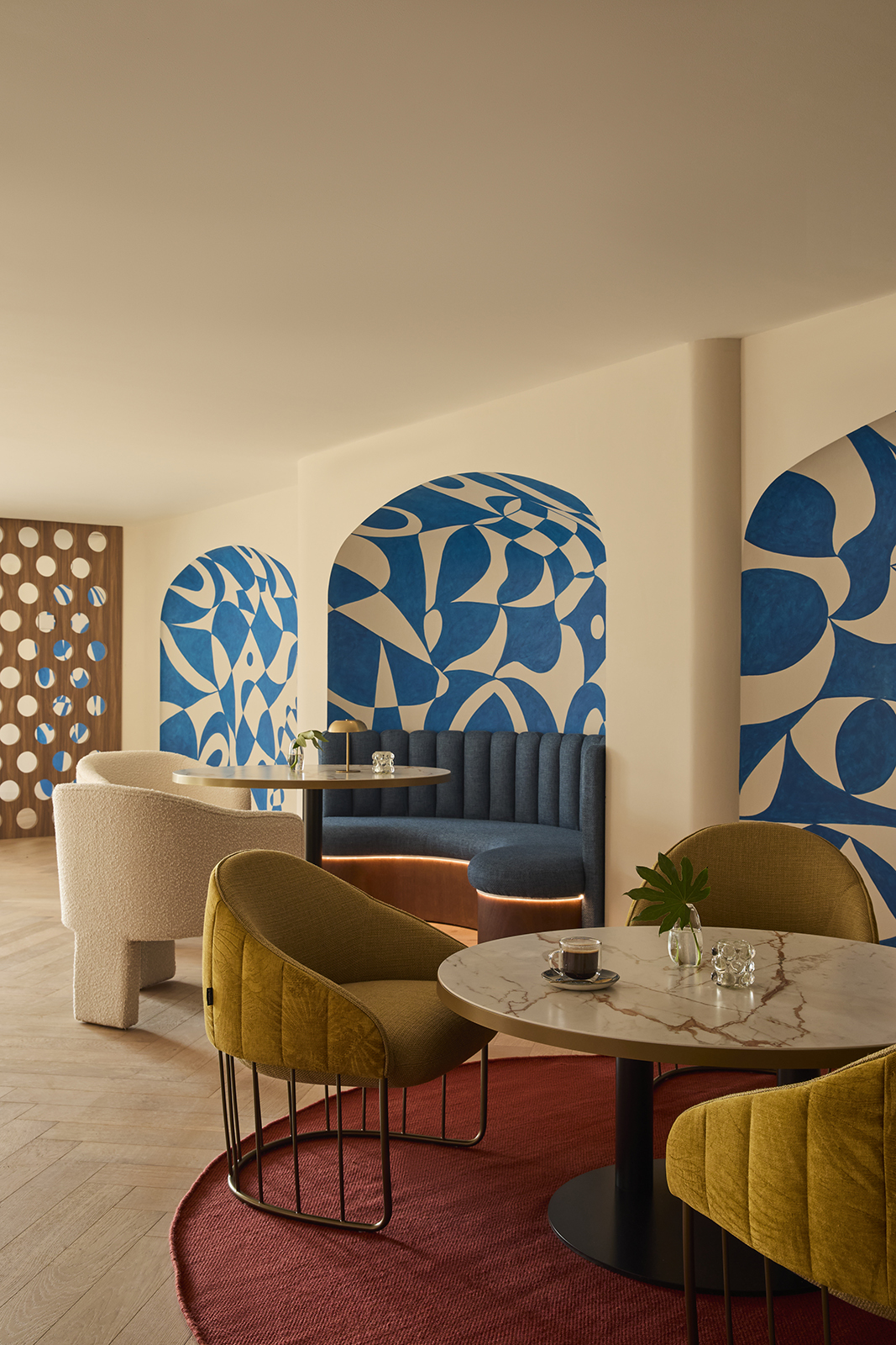 Large hand-painted murals — where s hades of blue take centre stage and Picasso- inspired feminine forms come to life— add a creative touch to various s eating areas, trans forming them into intimate, artful corners full of character.