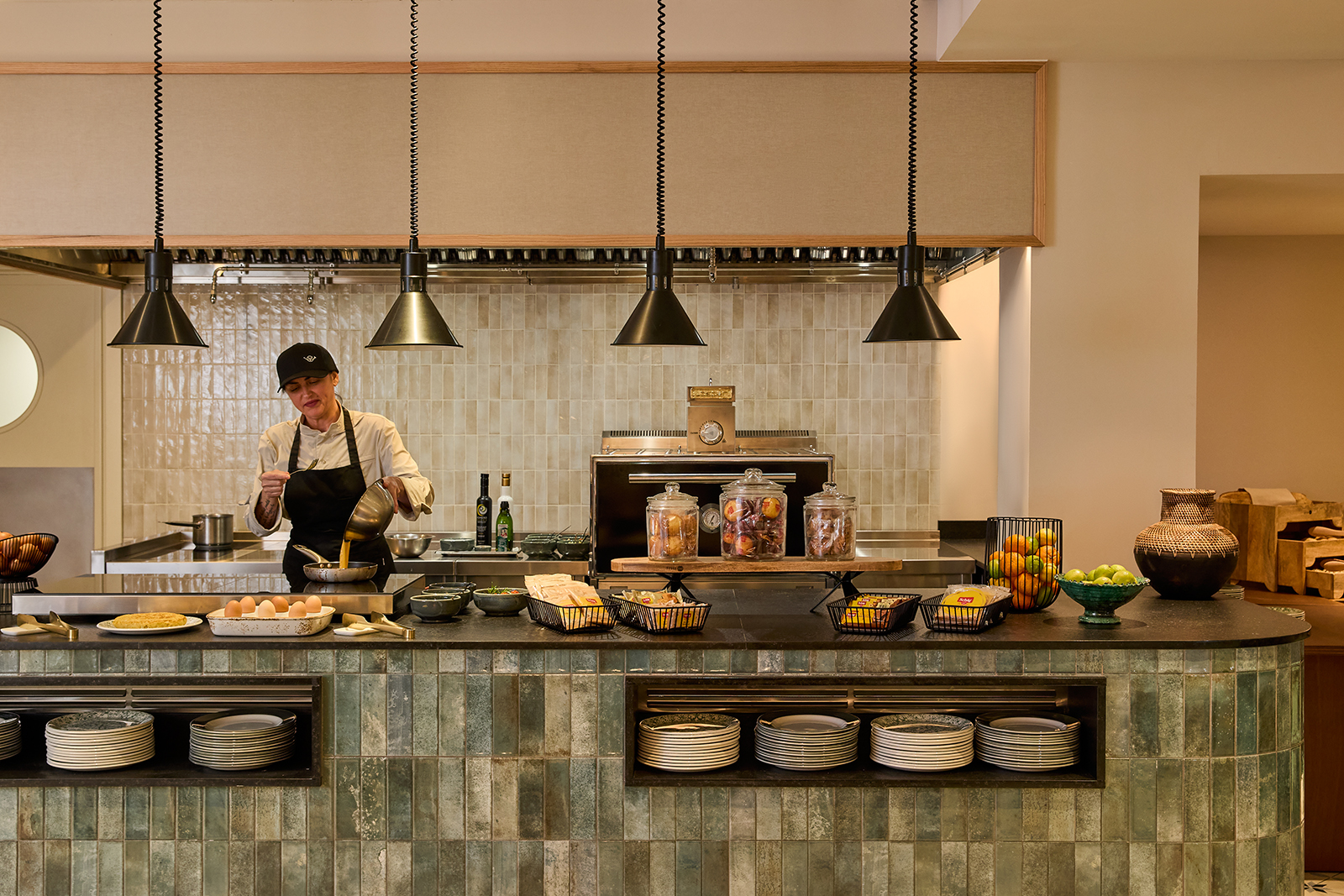 While drawing from Mediterranean tradition, the design also incorporates a ’70s -inspired touch that reflects the building’s original architecture from that era. This influence is evident in the use of geometric patterns , built-in niches, and light-filtering elements.