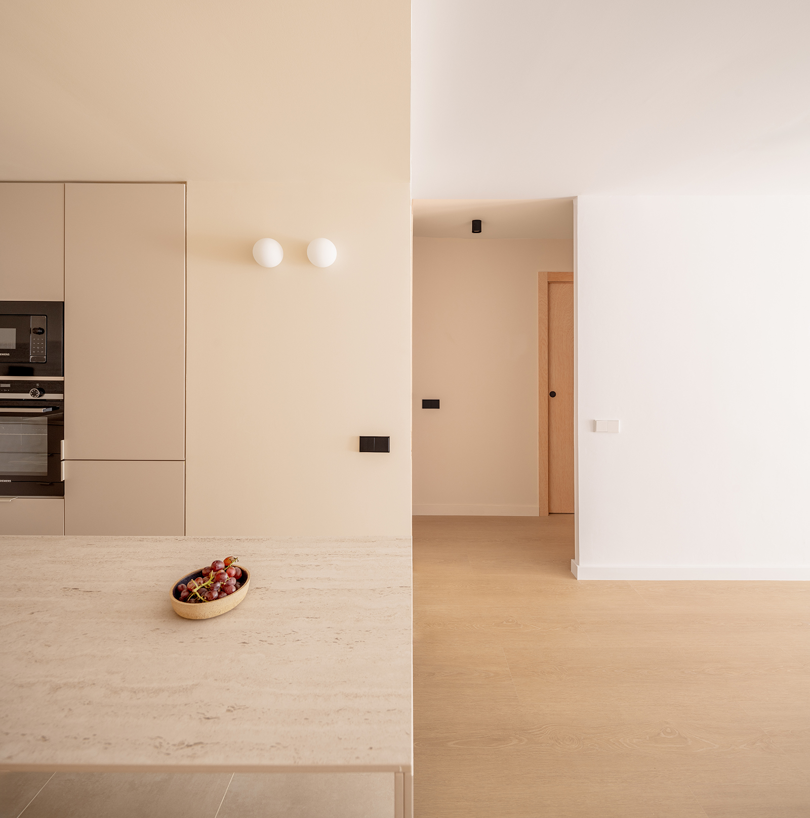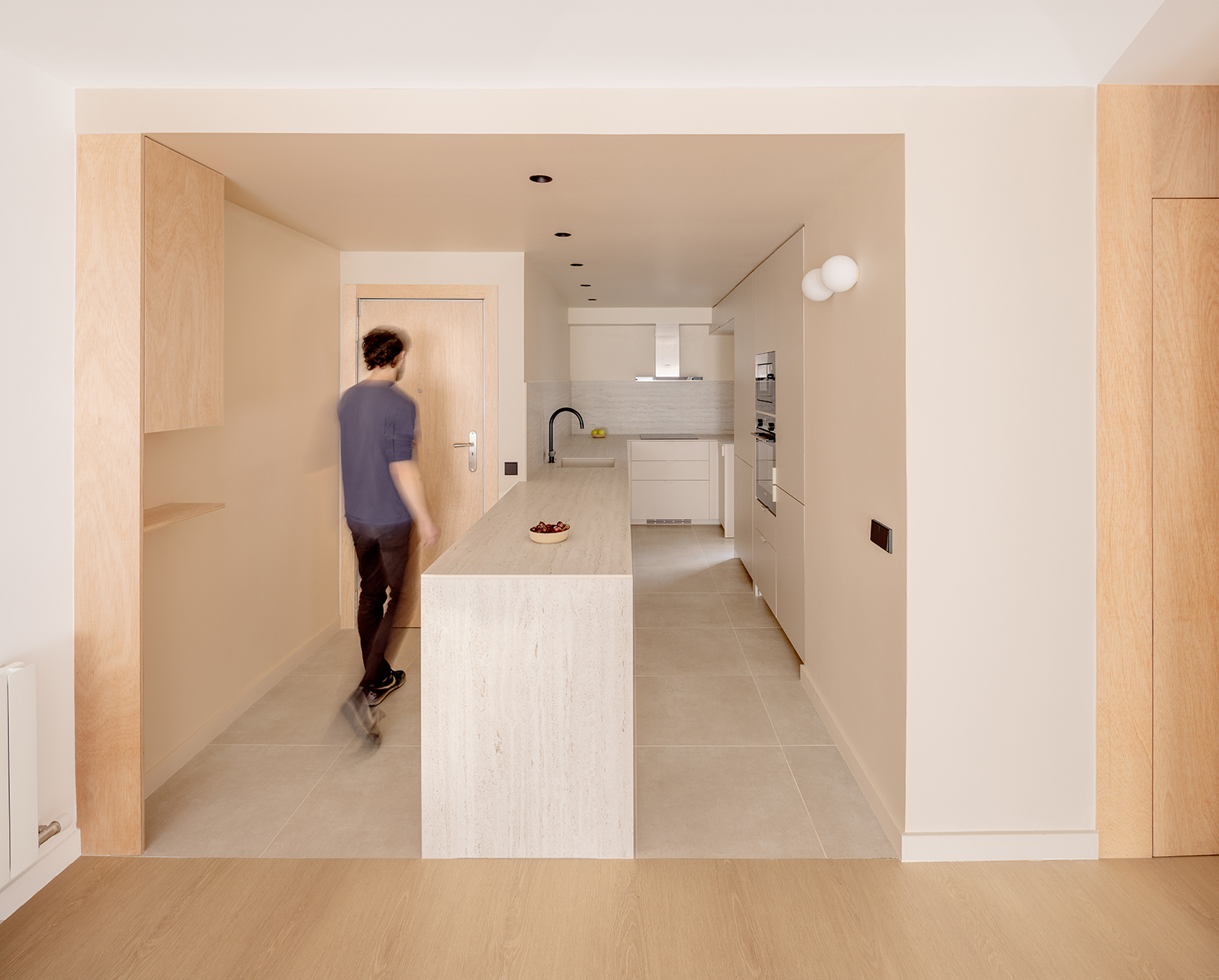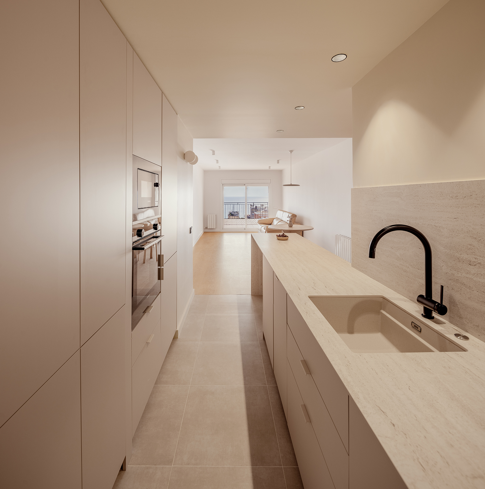 The project comprises the renovation of a two-bedroom apartment within a large housing building in el Masnou, a coastal city near Barcelona. The dwelling featured a fragmented distribution, with a large entrance, a small kitchen and a narrow and enclosed corridor.