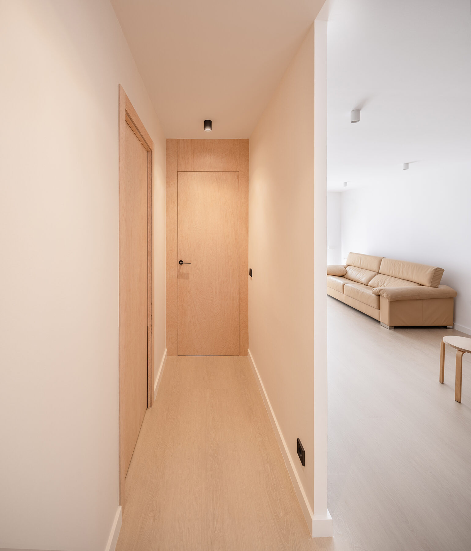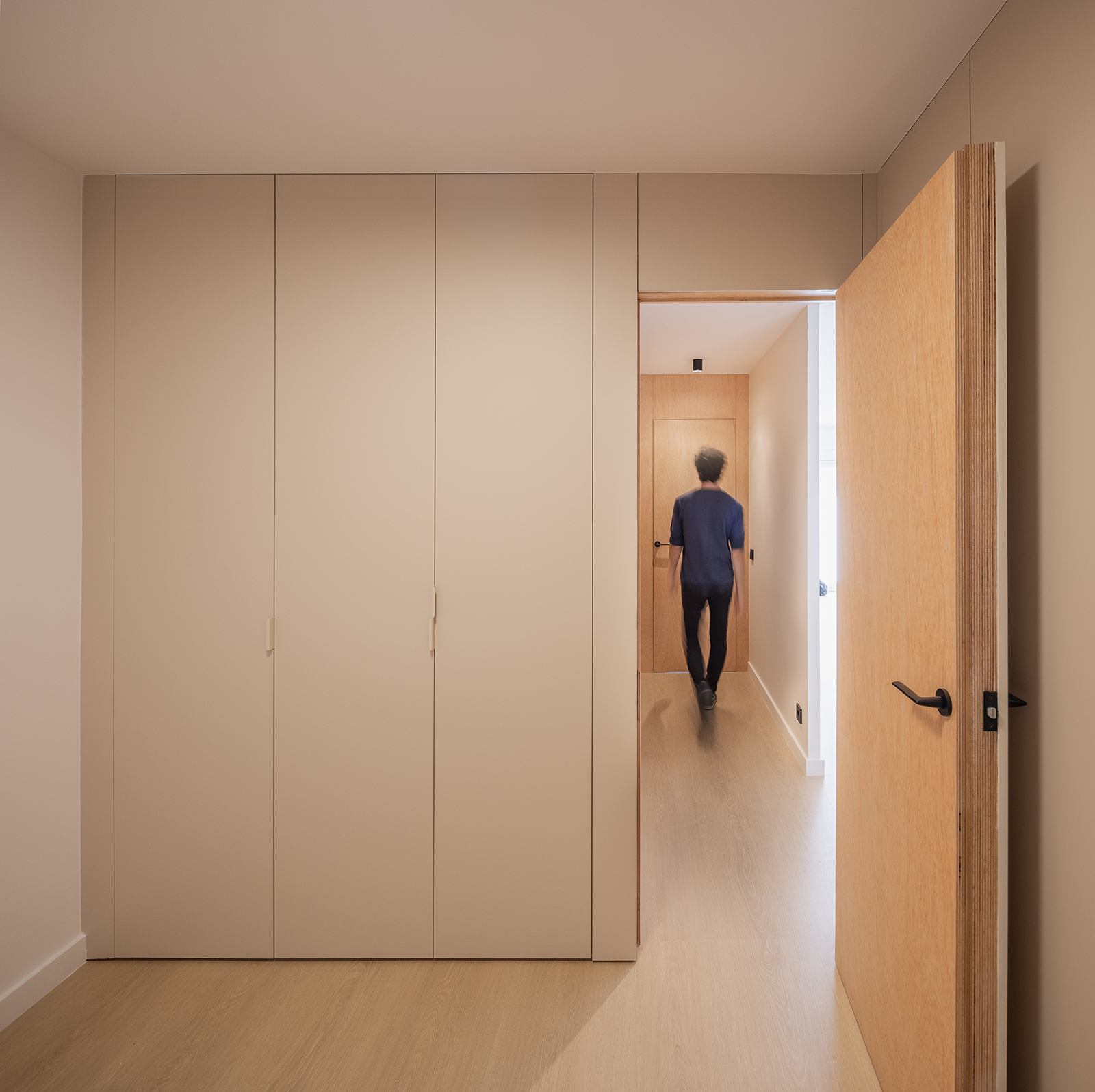 The reconfiguration of spatial units and the use of wood and beige colors constituted the synthetic principles around the renovation of an apartment by midori arquitectura in el Masnou, a coastal city near Barcelona.