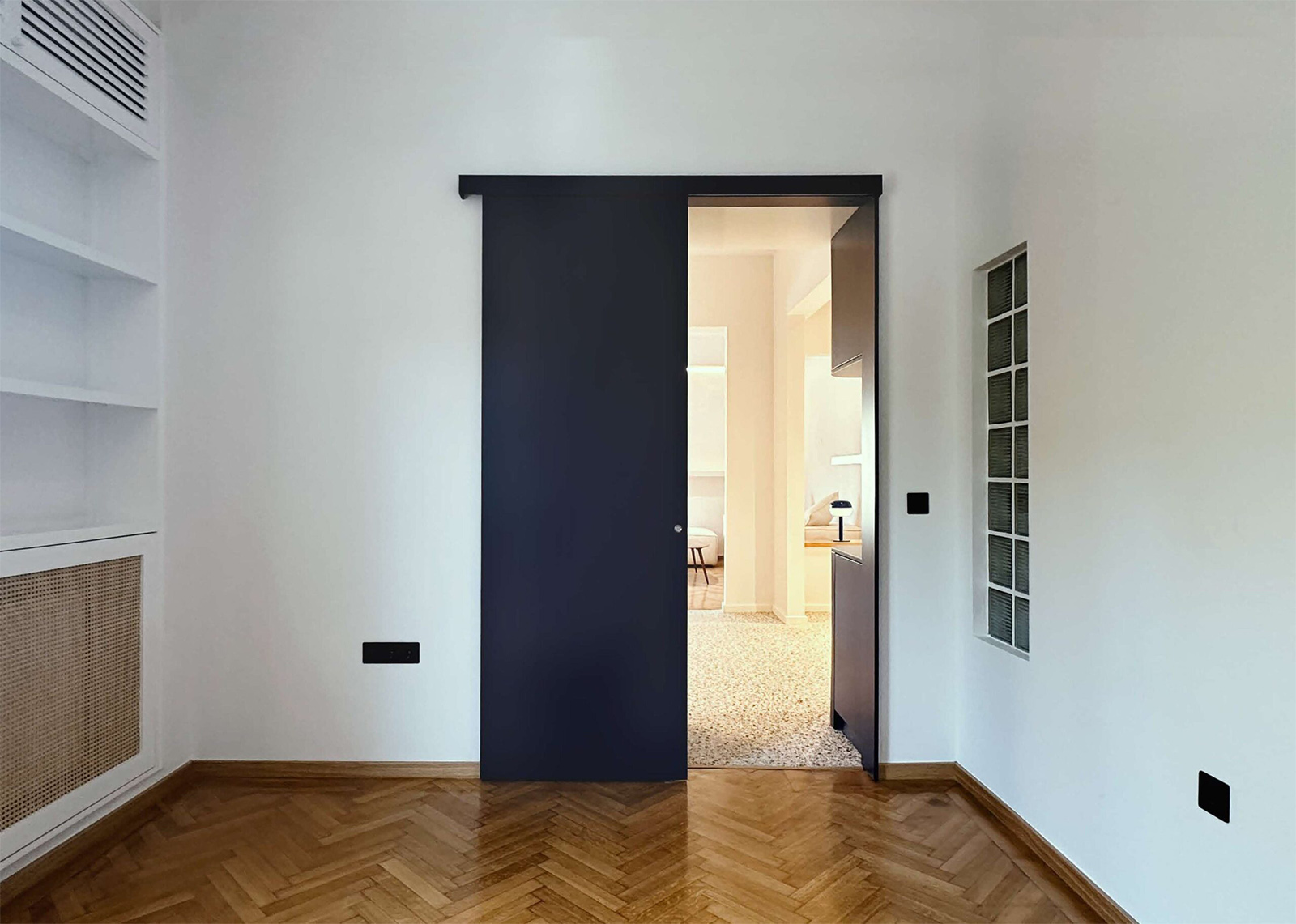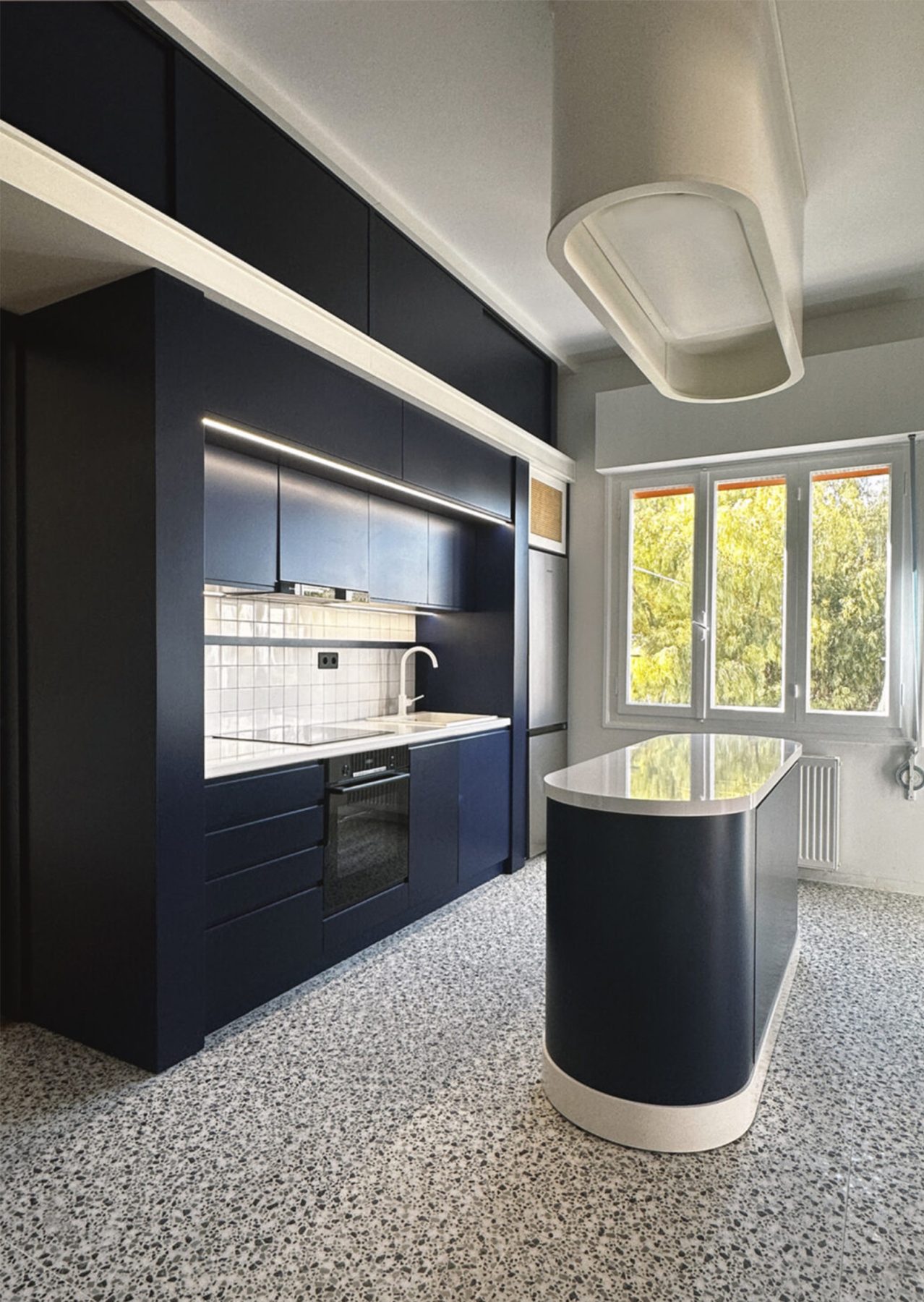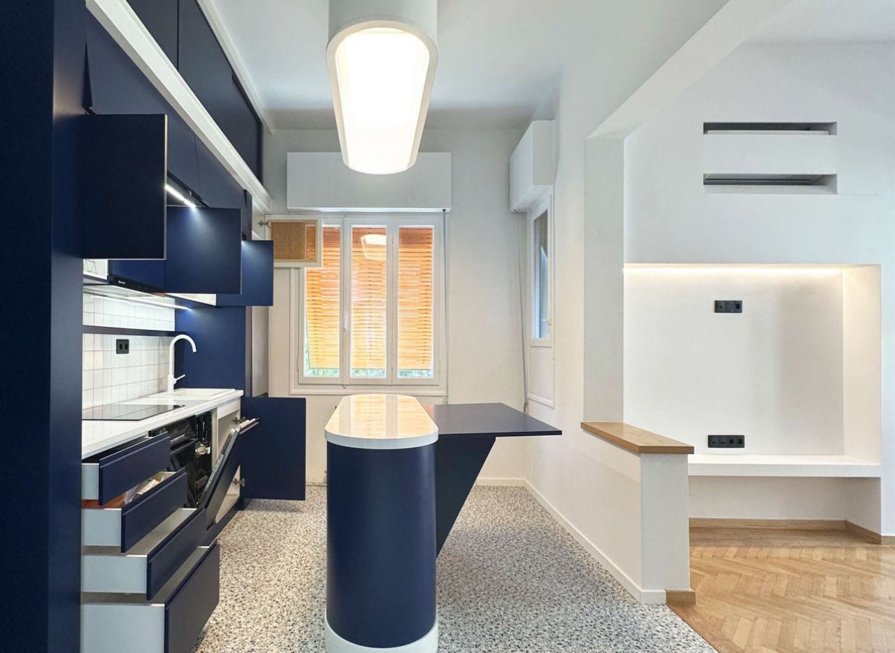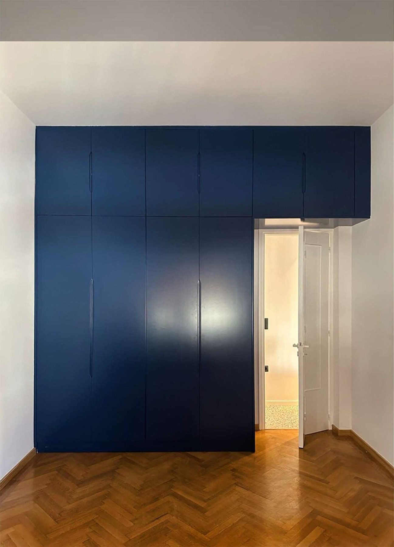 The Blue Apartment project by Takis Proios, involves the renovation of a single-floor apartment located in a three-story interwar building on Fokionos Negri (pedestrian Street), in Kypseli, Athens. The design meets contemporary living standards without compromising the historic character of the building.