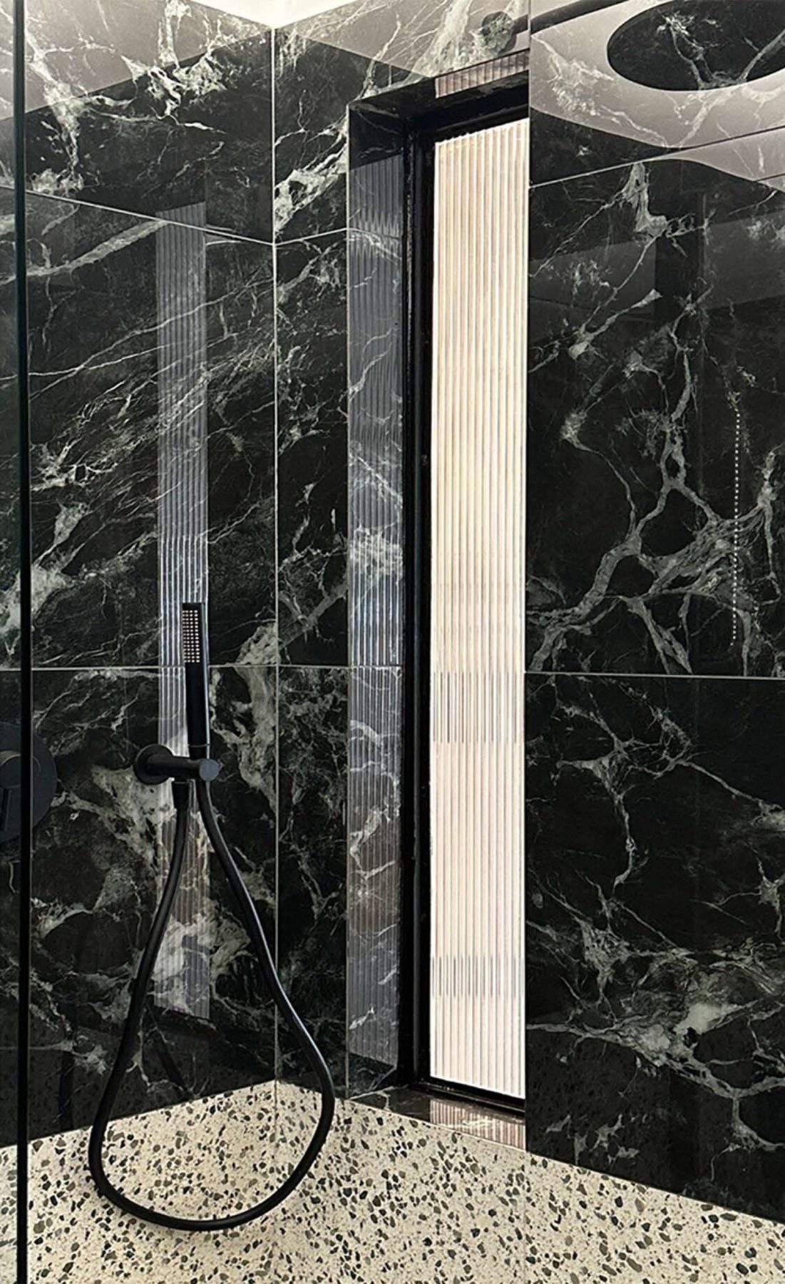 Originally configured as one unified apartment, the space was transformed into two independent units, measuring 70 and 55 square meters, respectively. The design and construction were completed within six months, with a primary focus on highlighting the architectural heritage and natural materials of the building, such as marble, wood, and mosaic floors.
