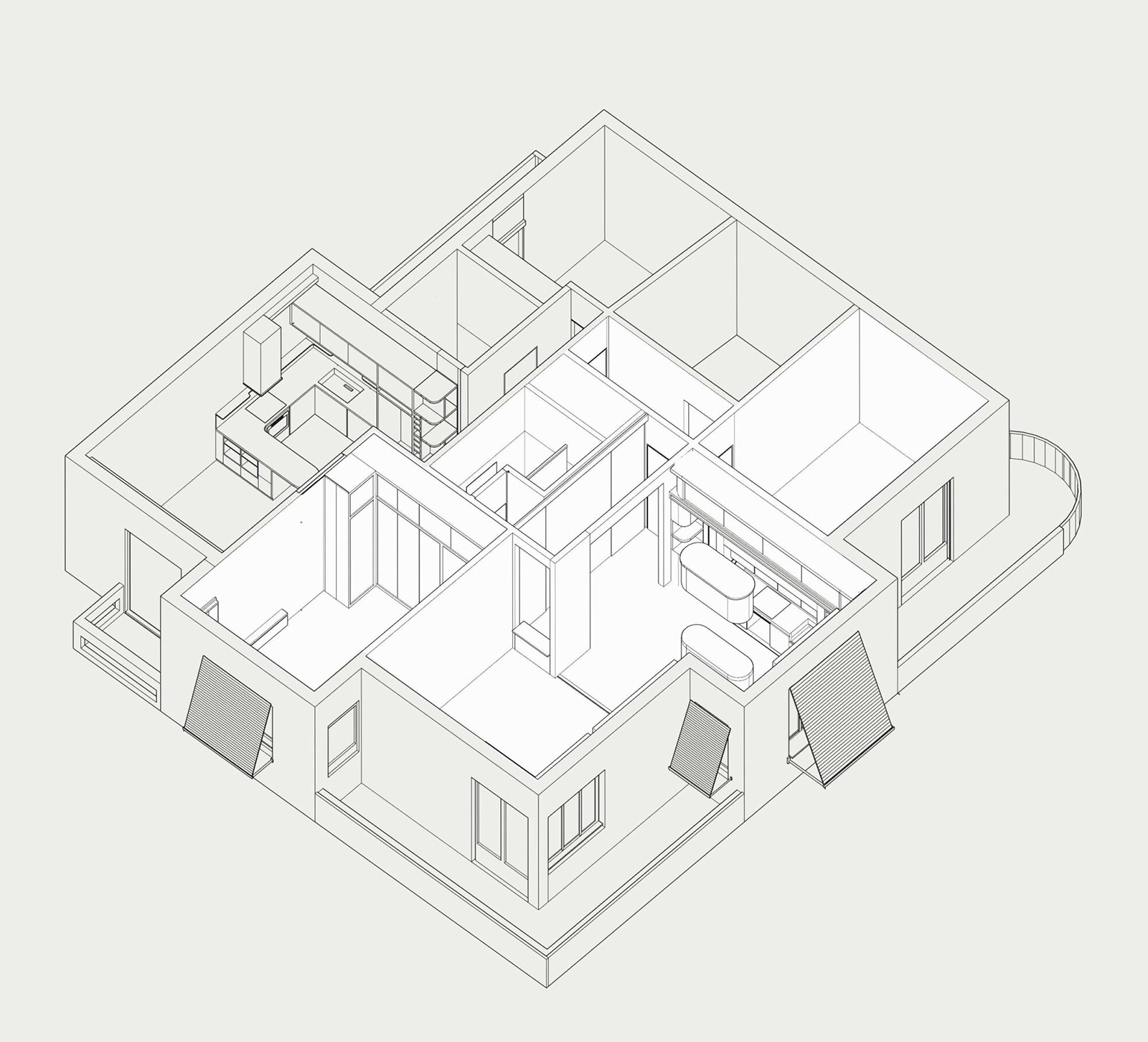 The new layout was carefully planned to optimize functionality and natural light while maintaining a strong connection to the urban environment through the perimeter balconies.
