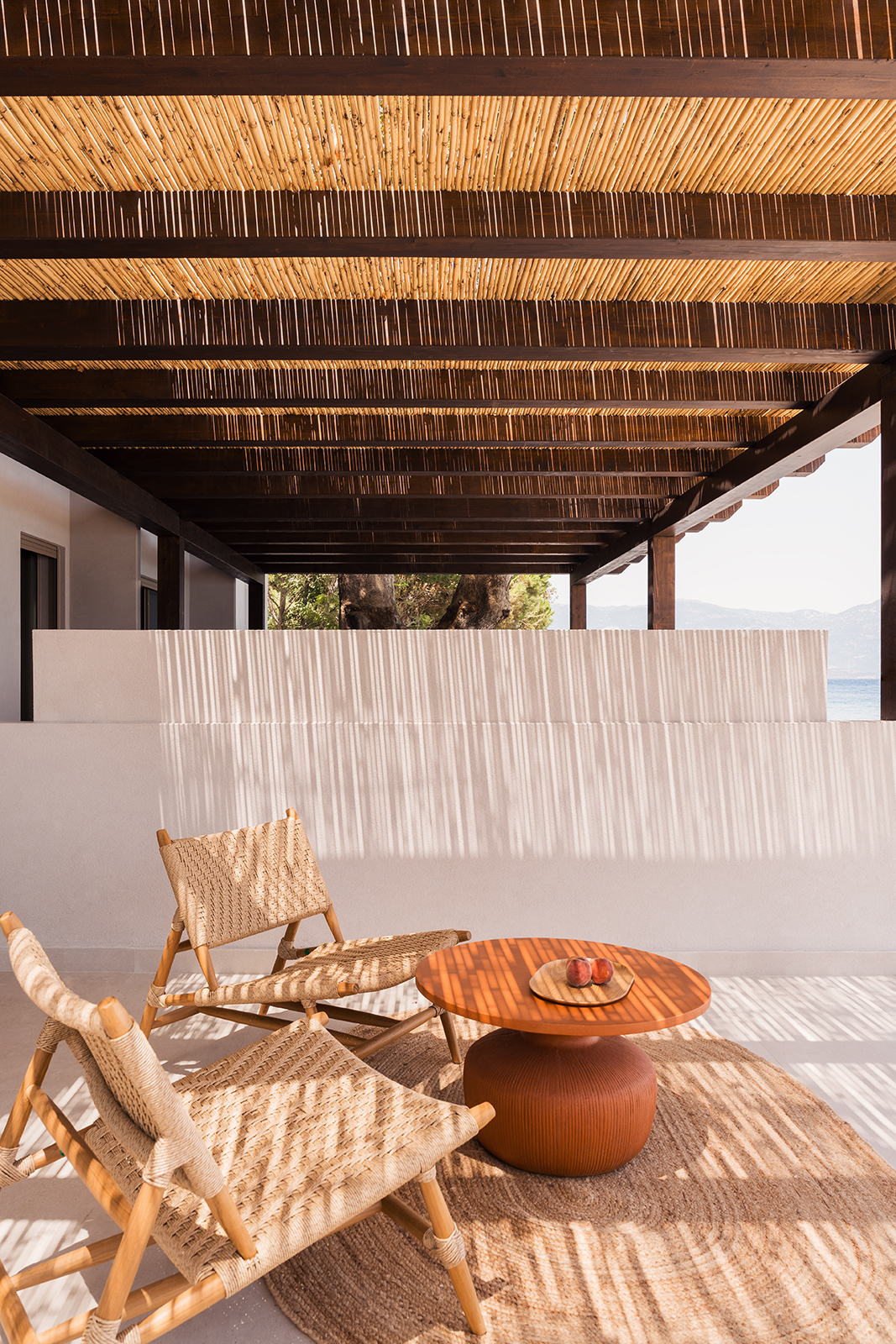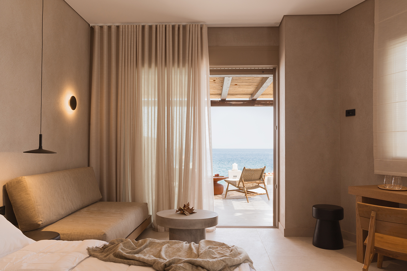 Located directly on the shoreline and in close proximity to the town of Aigio, the existing structure—a long- abandoned beach bar—was repurposed by Minάs Architecture into a series of autonomous hotel suites. The design approach prioritized adaptive reuse, maintaining the original shell of the building while completely reconfiguring the interior to accommodate the new hospitality program.