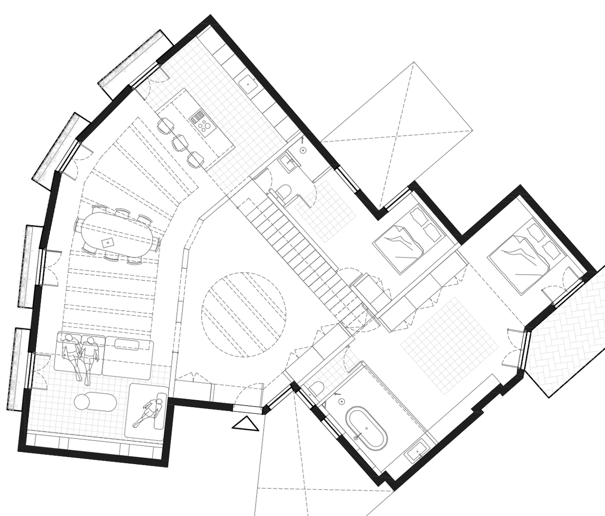 Once the original structure was preserved and partially revealed, a radial geometry naturally emerged as the central concept.