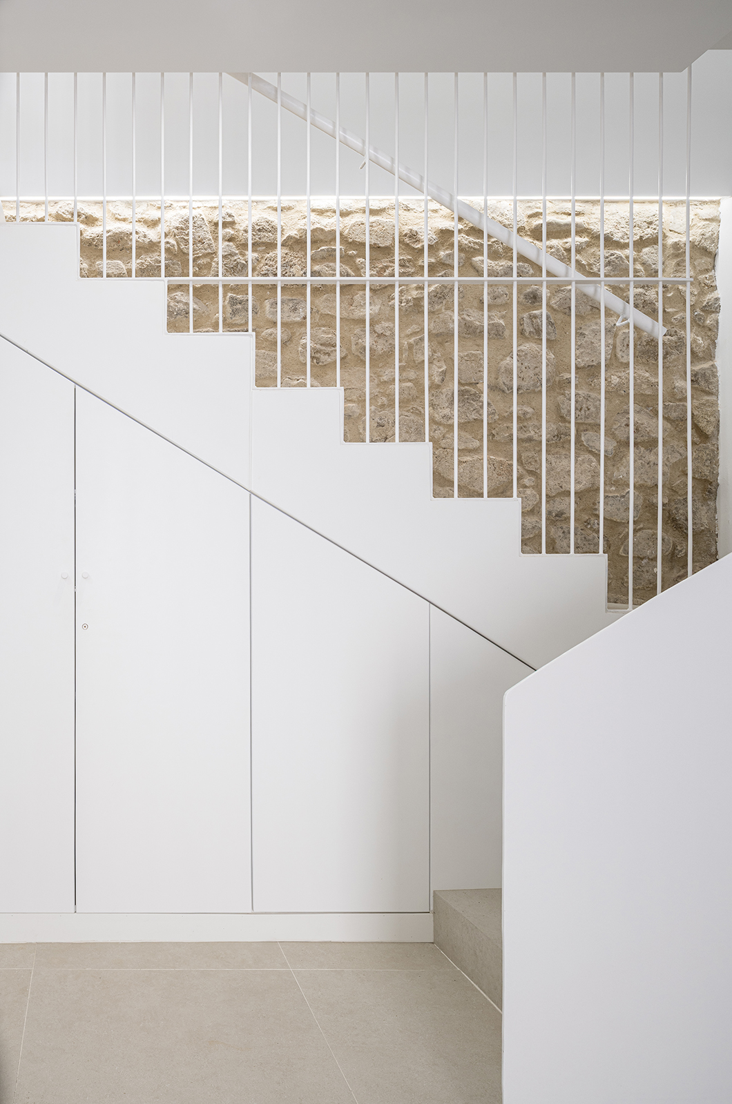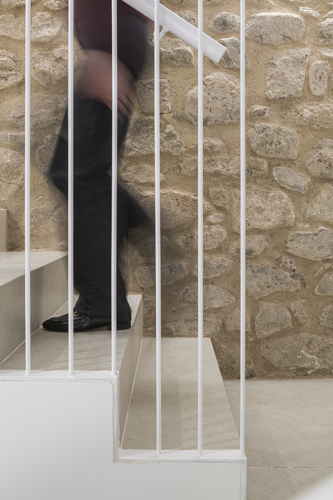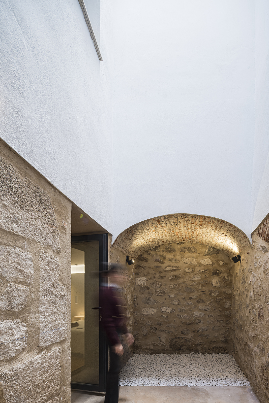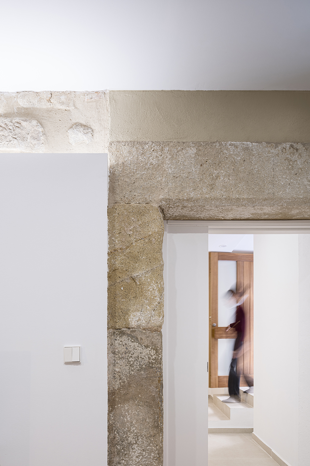 The distribution of the different apartments is given by the existing stone walls. Each of the rooms of the apartments (living room-kitchen or bedrooms) corresponds to those delimited by the structural walls.Far from similar rooms, these walls delimit spaces with different characteristics: rooms with different proportions, different floor slabs (one of the rooms has vaults initially hidden), etc.