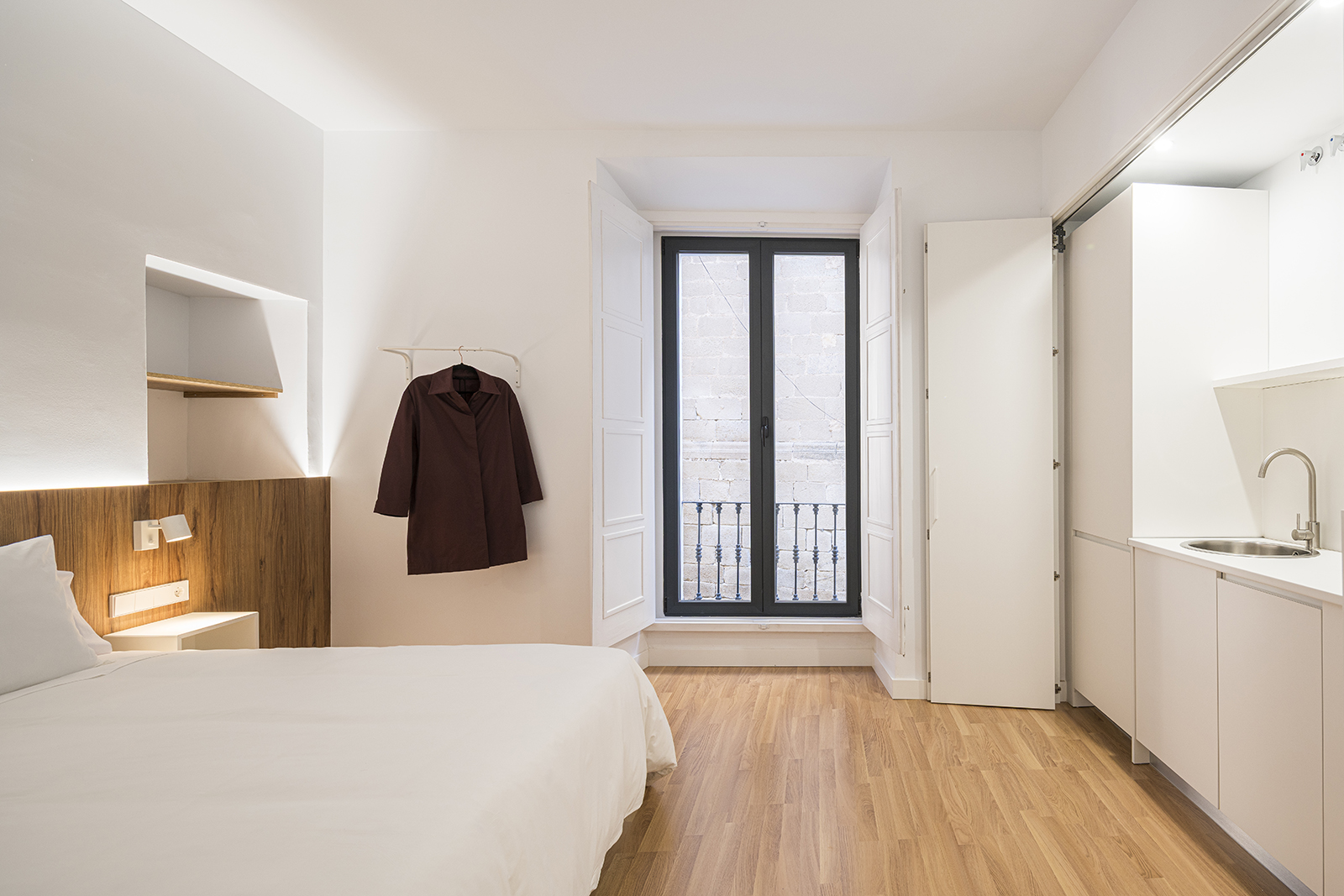 The connection and rehabilitation of an old bar, known as La Pata, and the dwelling located on the floor immediately above, give rise to four tourist apartmets: LAPATA Suites. Bulnes + Elliott Arquitectos design a “made-to-measure” rehabilitation, where global solutions are not imposed, but where each space dictates its own rules of the game.