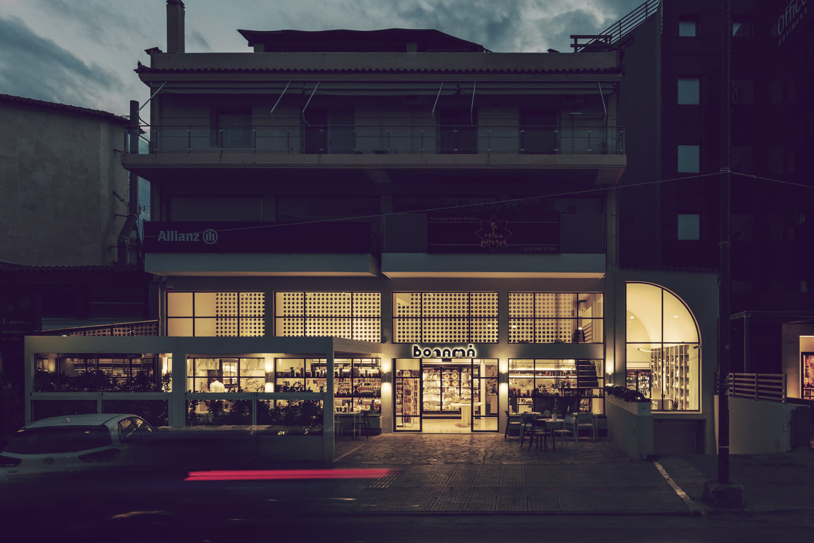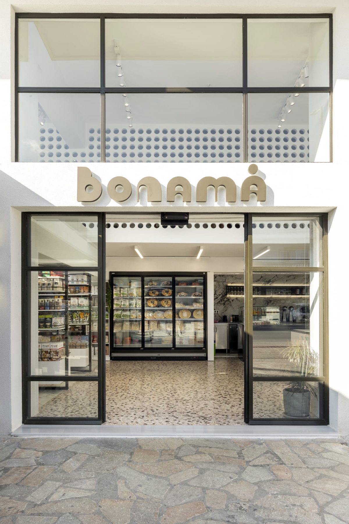 Για τον σχεδιασμό του καταστήματος Bonama Delicatessen, η ομάδα των SOUTH architecture, αντλεί έμπνευση από την βιομηχανική αισθητική του υπάρχοντος κελύφους, τον εμπορικό χαρακτήρα του δρόμου και το κλίμα της γειτονιάς της Γλυφάδας. Ο εσωτερικός χώρος αποτελεί μια λειτουργική σύνθεση αδρών υλικών ενώ η νέα διώροφη πρόσοψη γίνεται αντιληπτή ως η όψη μιας σύγχρονης αγοράς.
