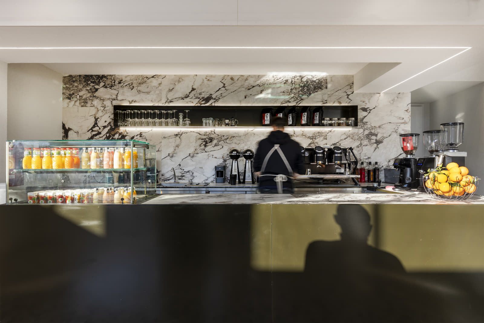 We envisioned Bonama Delicatessen as a warehouse-lab for local and artisanal products. The design combines materials such as perforated brick, tile, metal and plaster, creating a raw and yet a sophisticated composition.