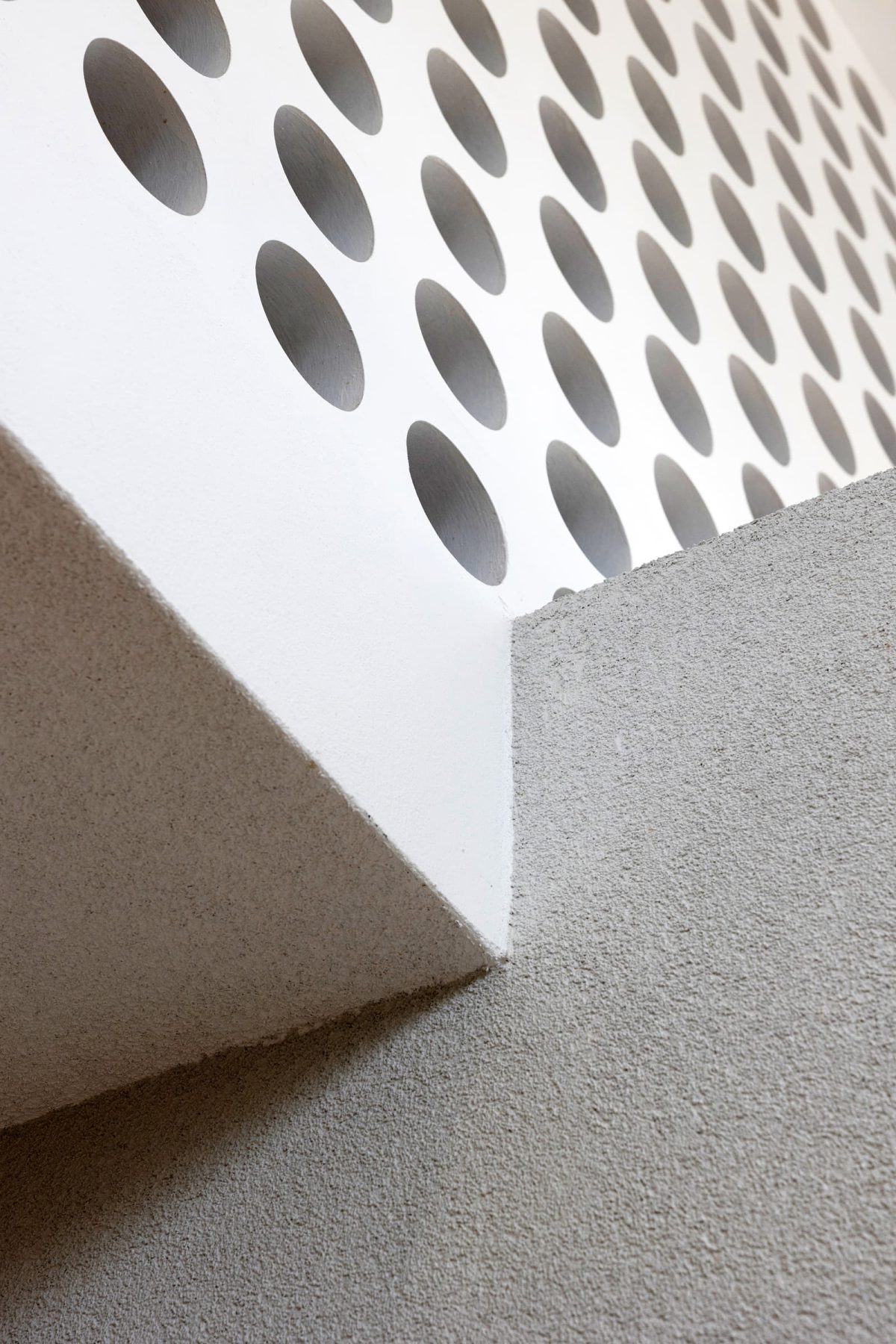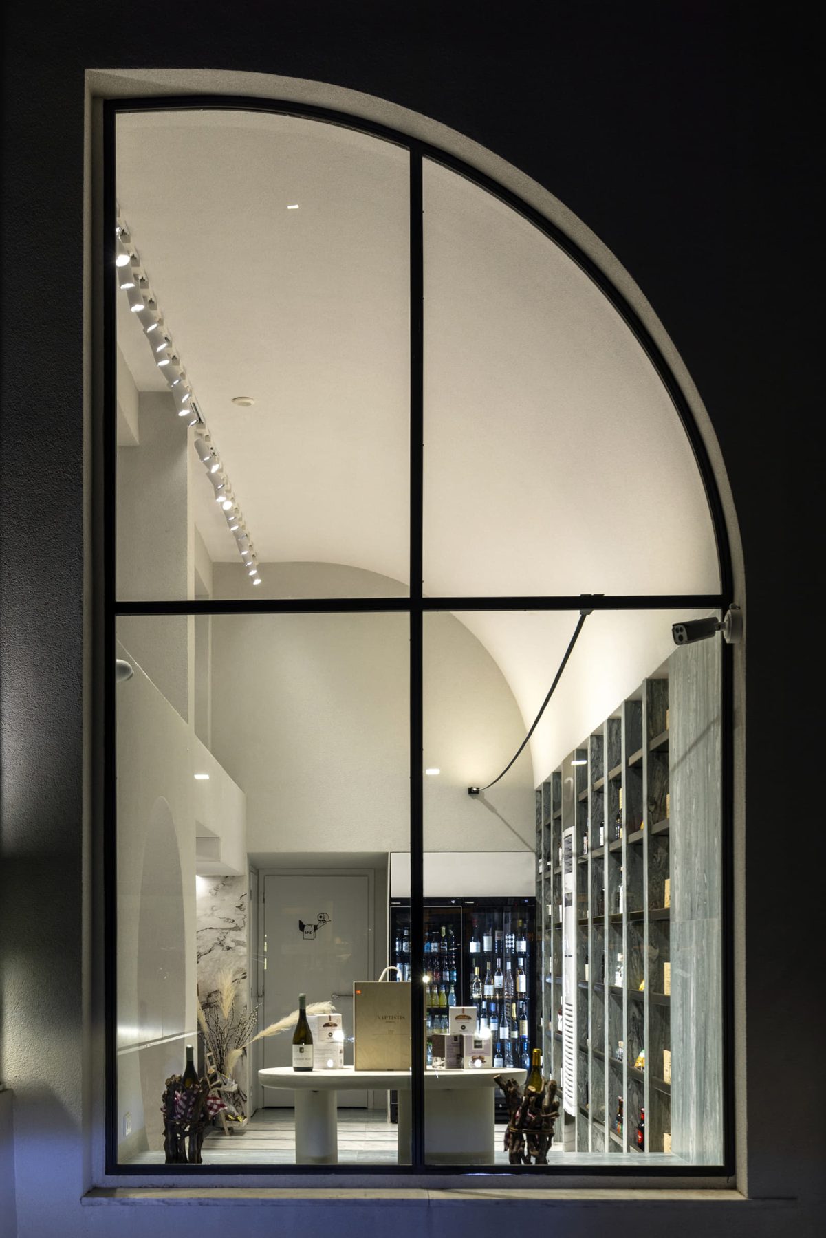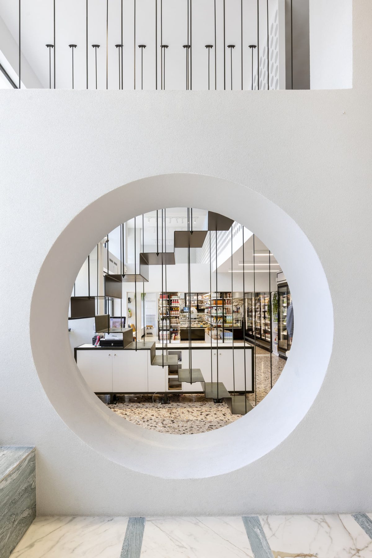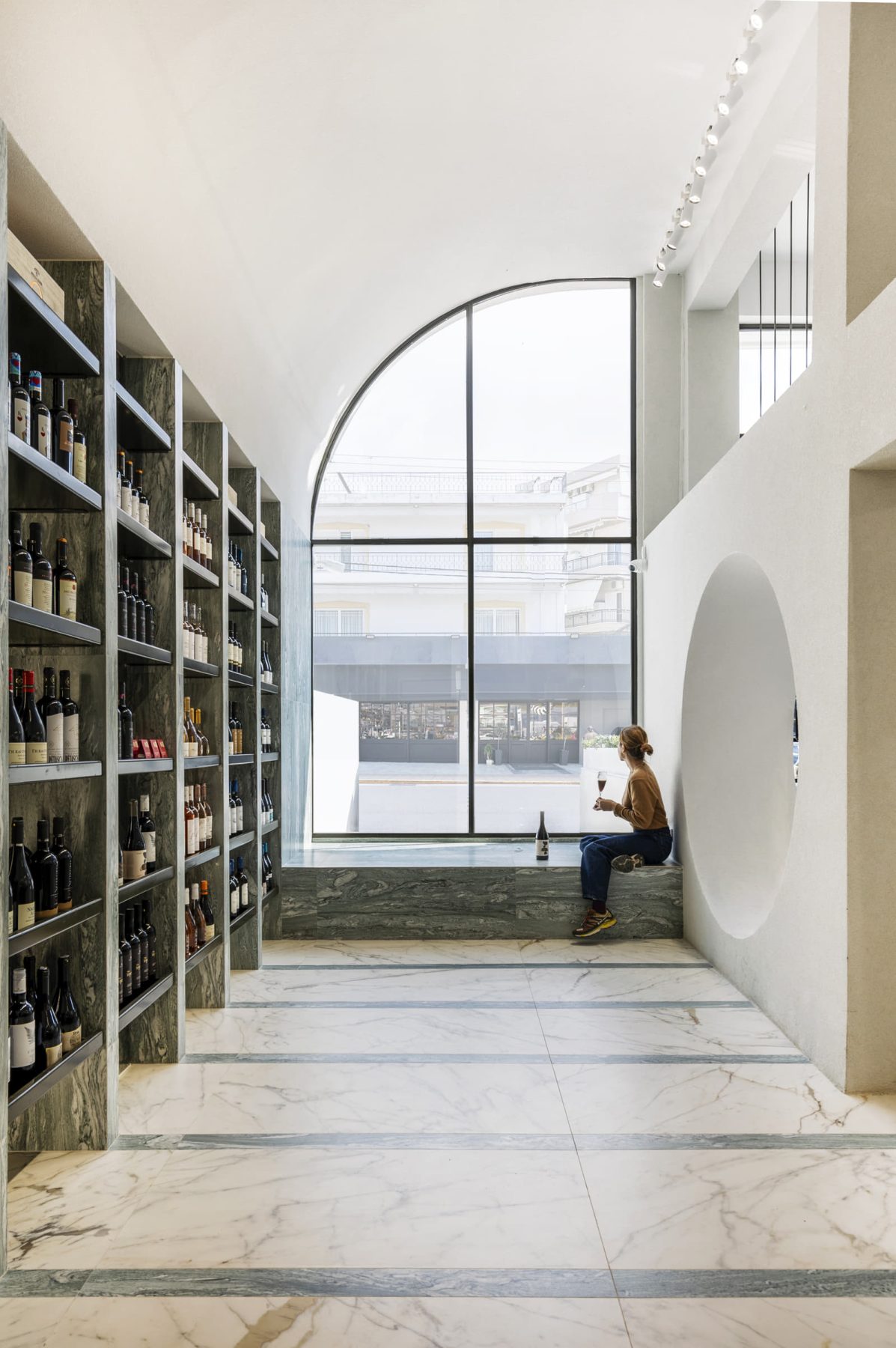 Designing the store in the seaside suburb of Glyfada, we used Mediterranean materials, such as the new perforated clay brick wall and a porous plaster coating for the existing ones, as well as new elements that recall local typologies, such as the semi-cylindrical arch.
