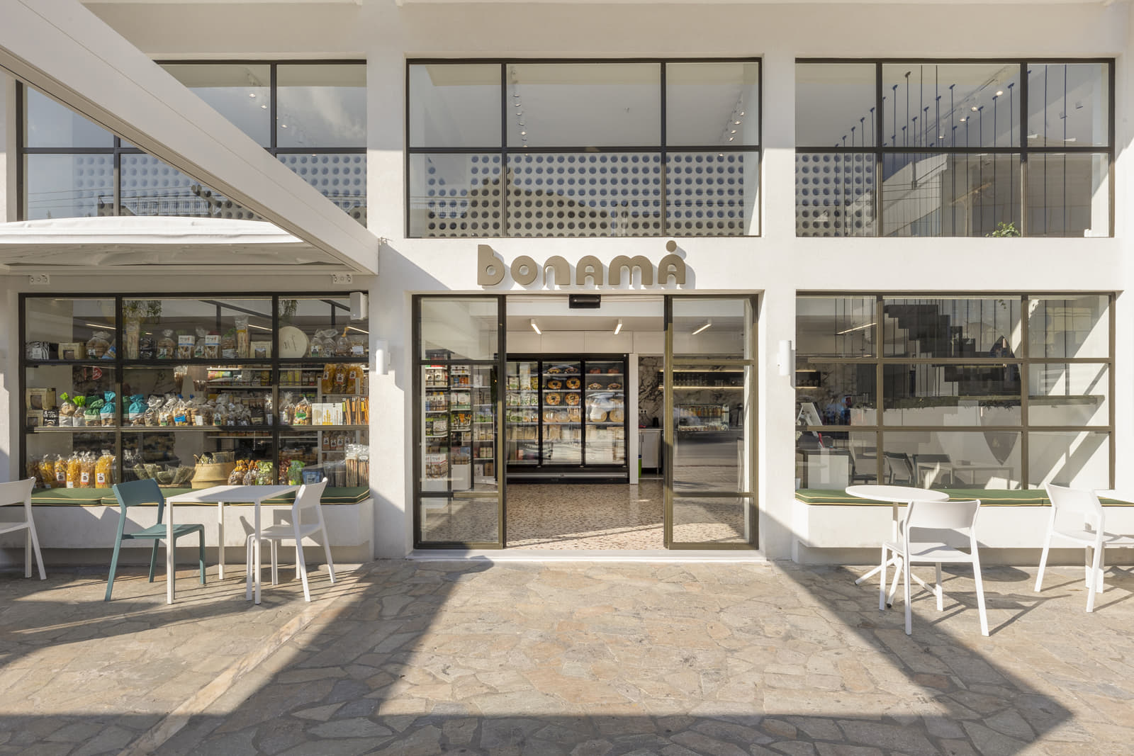 Εμπνευστήκαμε το Bonama delicatessen ως μια αποθήκη-εργαστήριο τοπικών και βιοτεχνικών προϊόντων. Ο σχεδιασμός του συνδυάζει υλικά όπως διάτρητα τούβλα, πλακάκι, μέταλλο και σοβά, δημιουργώντας μια αδρή και εκλεπτυσμένη σύνθεση.