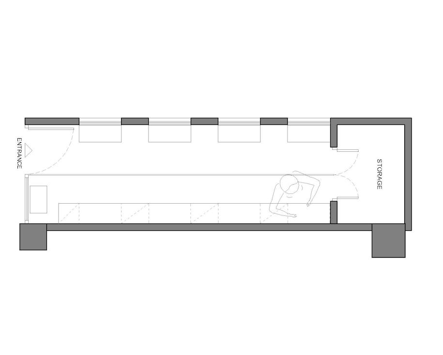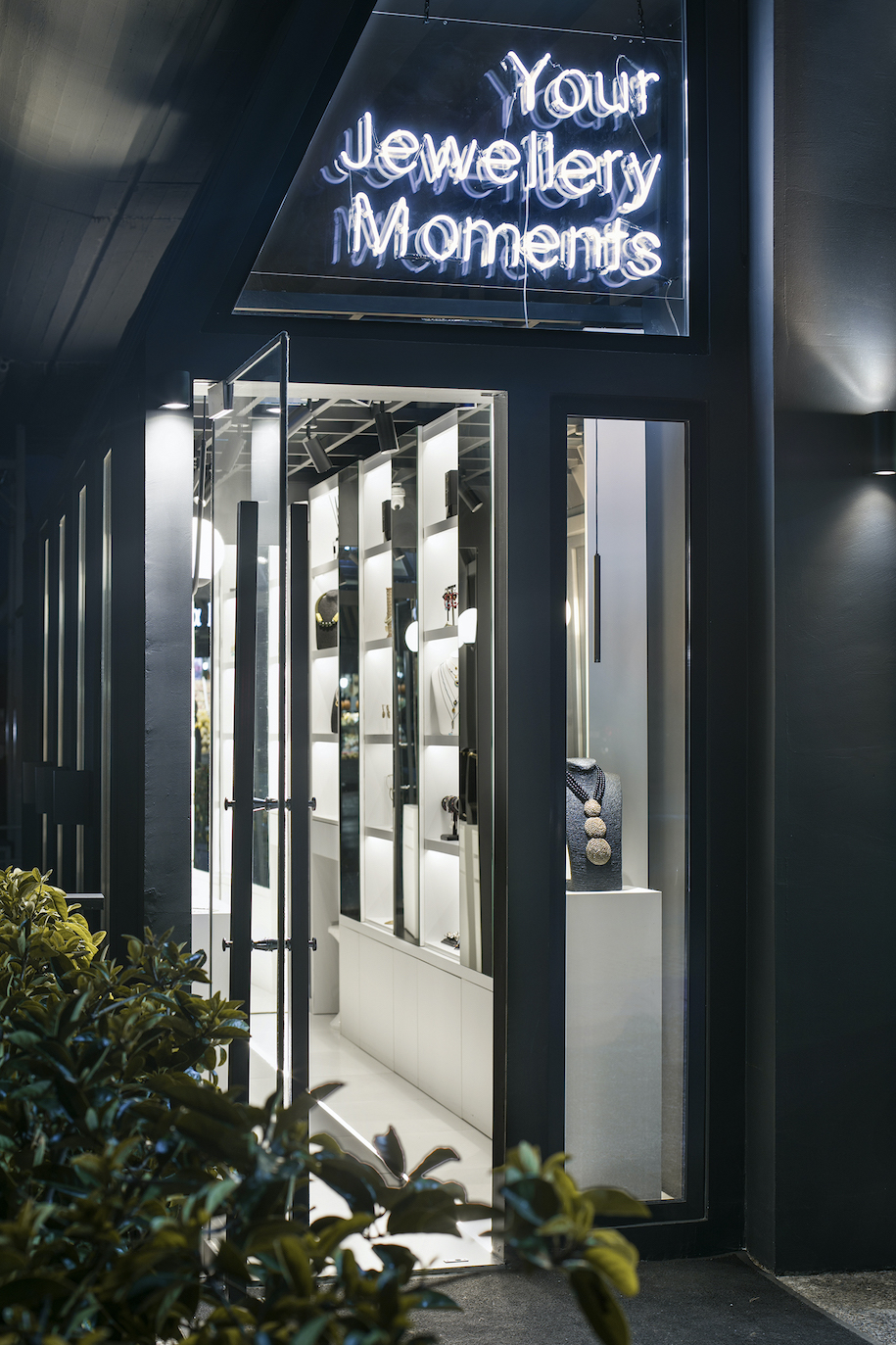Το κοσμηματοπωλείο Bliss είναι χωρισμένο στα δύο με ένα γραμμικό φως που τρέχει κατά μήκος στο δάπεδο. Από την μια πλευρά τα λευκά πλακάκια ενώνονται με την λευκή κατασκευή των εκθεμάτων, ενώ από την άλλη, το σκούρο δάπεδο φτάνει μέχρι τους ανθρακί τοίχους. Τα κάθετα ανοίγματα αφήνουν σε θέα τα εκθέματα της απέναντι πλευράς, την ίδια στιγμή που τα αντίστοιχα ανοίγματα στο άνω μέρος επιτρέπουν το φως να διαχέεται και στο διπλανό κατάστημα. Για να περιοριστεί το μεγάλο ύψος, κατασκευάστηκε ένας μεταλλικός μαύρος κάναβος στον οποίο στηρίχτηκε ο φωτισμός και παράλληλα χρησιμοποιήθηκε για την τοποθέτηση καθρεπτών στο ταβάνι.