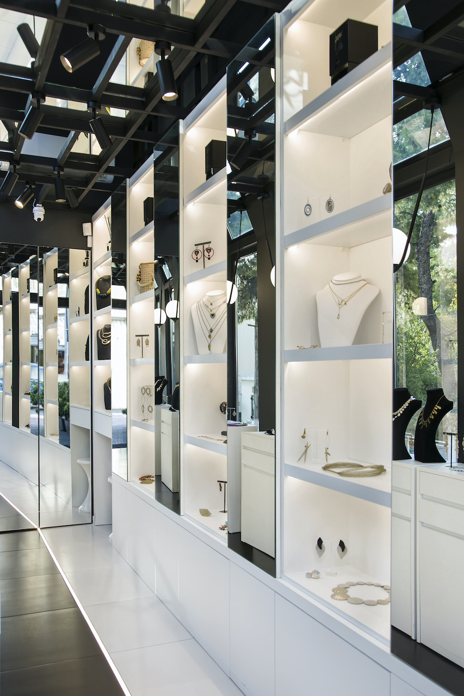 EC interiors transformed a small warehouse in Kifissia into a bright, modern jewelry store.