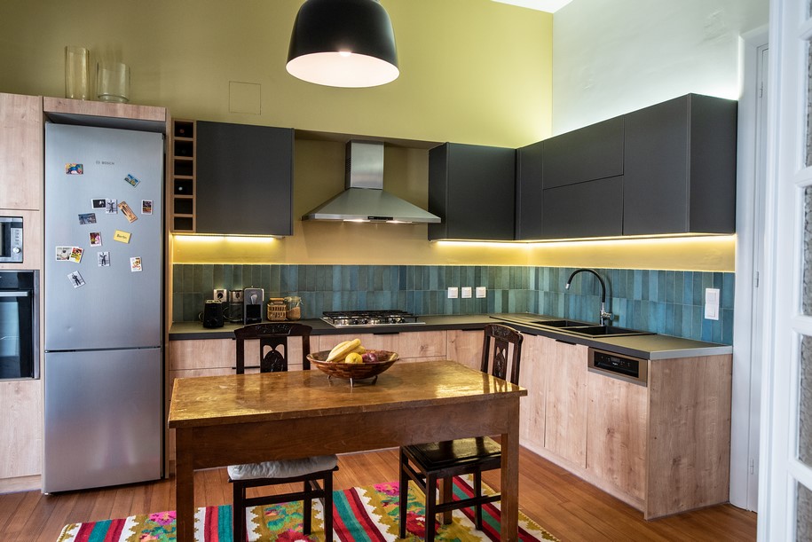 Η κουζίνα σχεδιάστηκε και επανατοποθετήθηκε σε νέο χώρο, ώστε να εξυπηρετεί άψογα τις ανάγκες τις σύγχρονης ζωής, διατηρώντας καλύτερη σχέση με τους υπόλοιπους καθημερινούς χώρους.