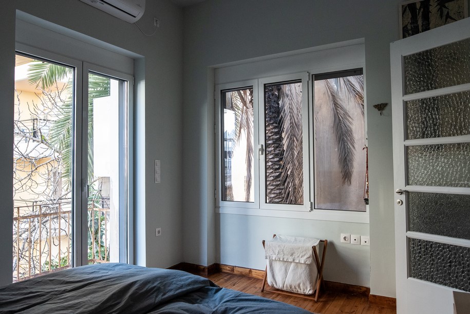 Τα εξωτερικά κουφώματα έδωσαν τη θέση τους σε σύγχρονα, που όμως ταίριαξαν στο σύνολο του κτίσματος, ώστε η κατοικία να απομονωθεί από τη φασαρία της περιοχής και να προστατευτεί από τις δύσκολες καιρικές συνθήκες.