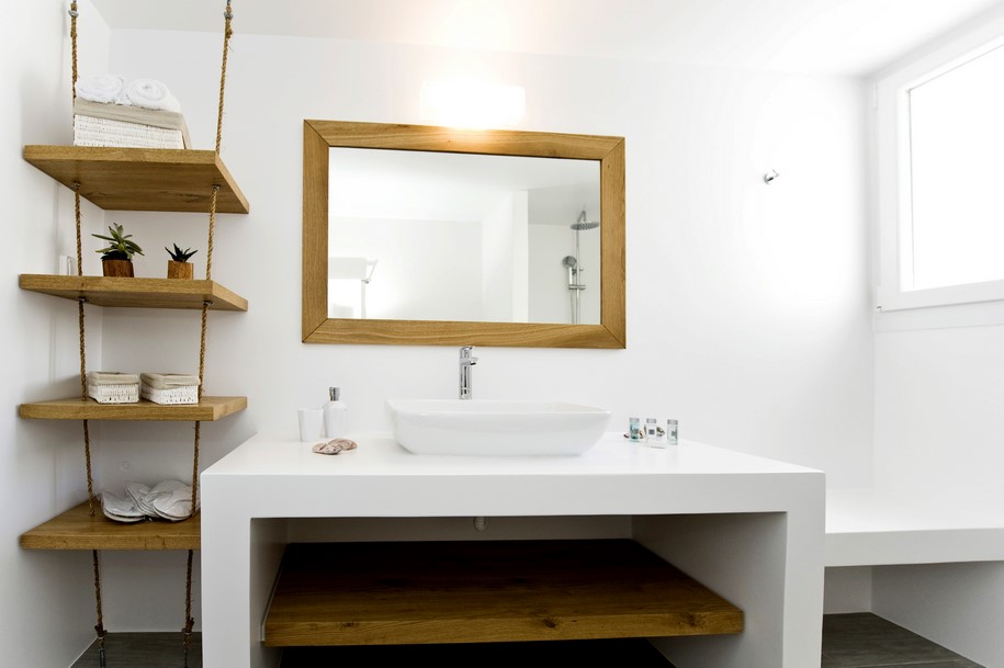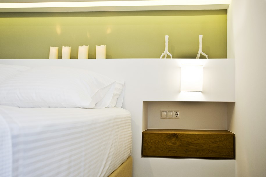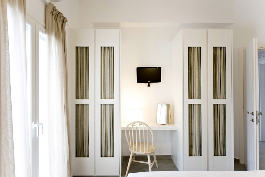 In the bathrooms and bedrooms Ralli applied the Cycladic architecture with its “built” interior features combined with the modern and comfortable contemporary furniture which certainly contribute to the functionality of the spaces.
