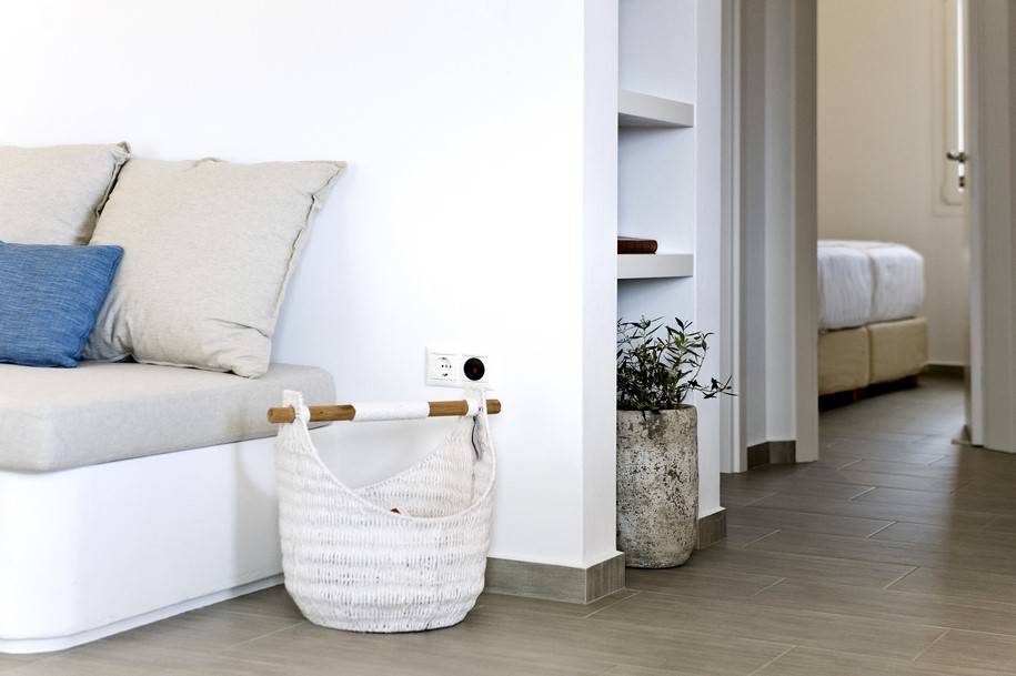 The chosen colour shades are all earthy and warm with the exception of the “touches” of blue which match perfectly the blue of the sea and the sky. All in all, the main goal was to serve the principles of contemporary design adapted to the cycladic architecture in order to satisfy the guests’ needs.