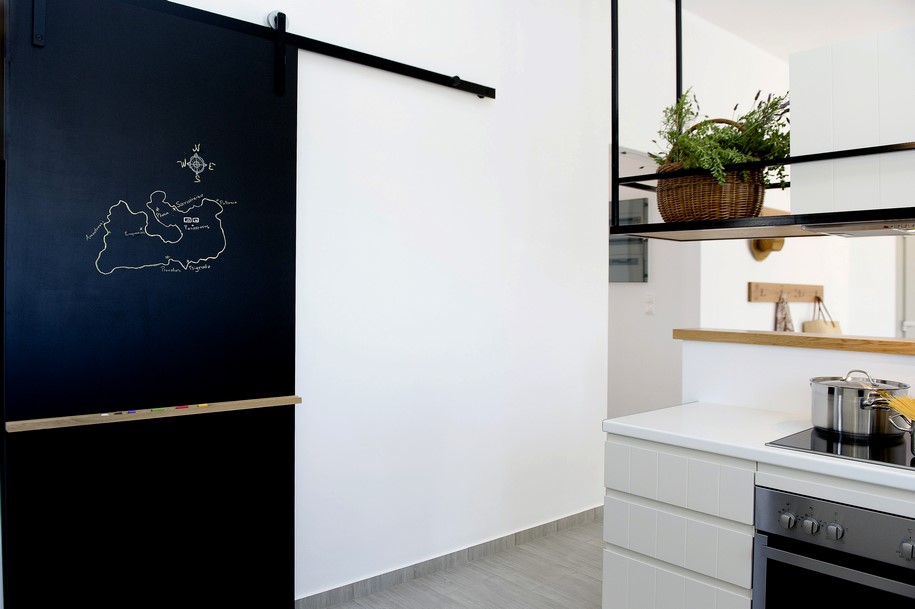In both houses the office designed the kitchen area in such a way so as not to be directly visible from the living room but at the same time to be in close contact with it and the dining room as well, emphasizing on plenty of storage space.