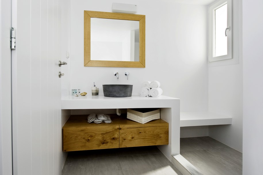 In the bathrooms and bedrooms Ralli applied the Cycladic architecture with its “built” interior features combined with the modern and comfortable contemporary furniture which certainly contribute to the functionality of the spaces.