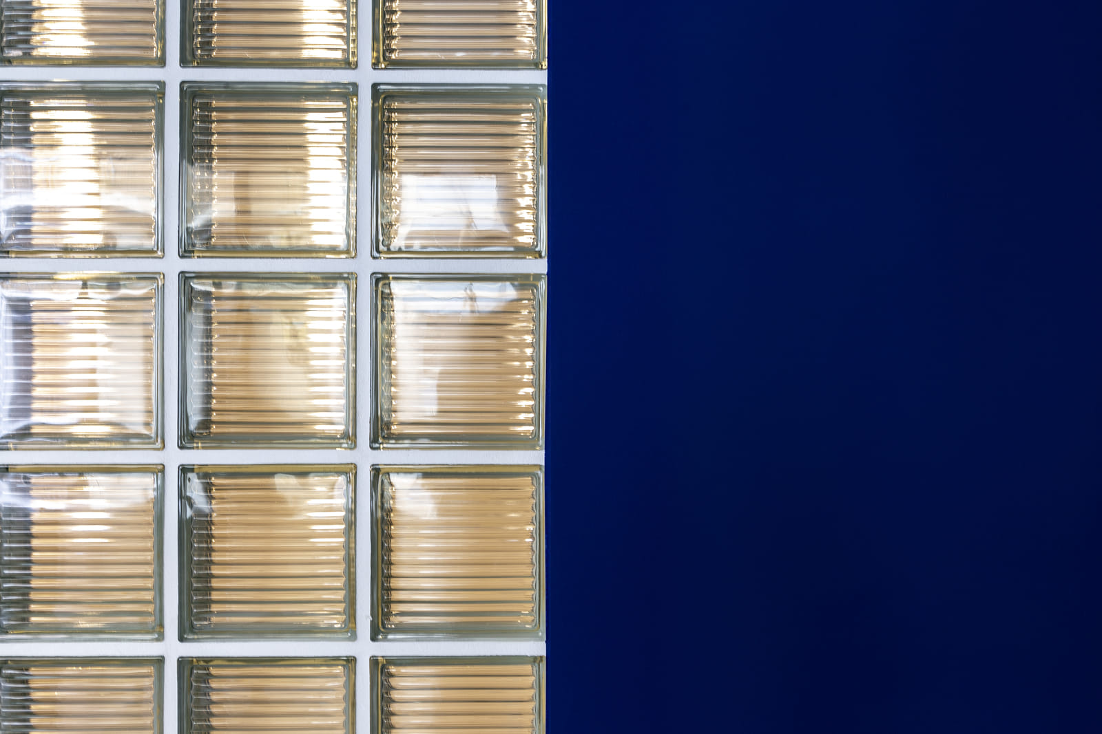 Το βαθύ μπλε χρώμα σε τοίχους και οροφή αποτέλεσε το βασικό συνθετικό εργαλείο, ένα χρωματικό πλαίσιο που ενοποιεί τους χώρους και μεταβάλλει διακριτικά την αντίληψη του εσωτερικού.