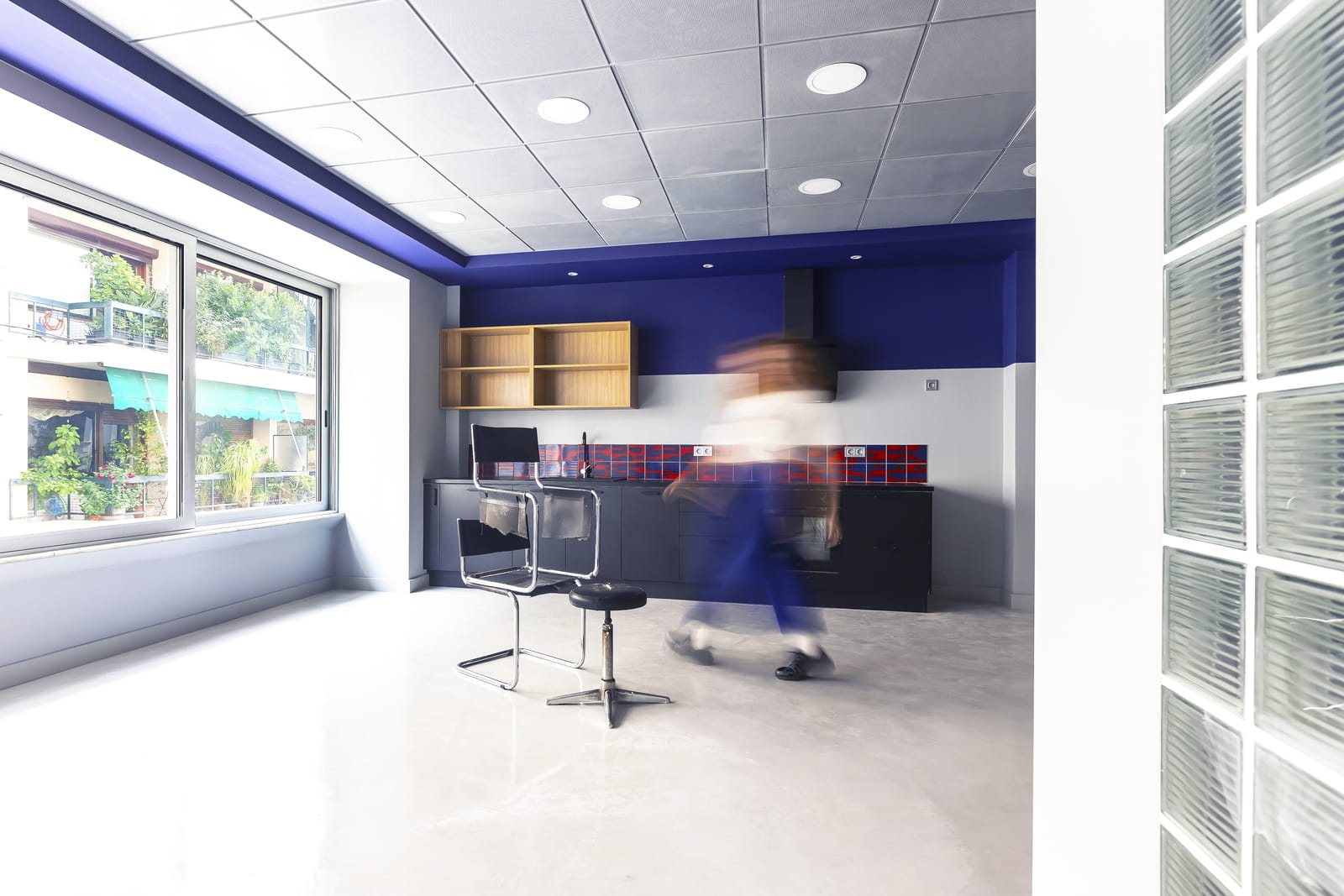 In this renovation, a working space in Exarheia, Athens, that was used as an architectural office, is reimagined as a flexible contemporary workspace, where color, light, and materiality compose a new architectural identity.