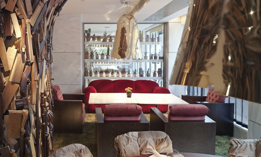 New Hotel has been designed by renowned design duo the Campana Brothers Humberto and Fernando Campana, as their first hotel project, in conjunction with architectural students from the University of Thessaly. Throughout the property the brothers fuse old with the new, mixing modern design touches with themes from Athenian culture, as New Hotel strives to maintain links with the local neighbourhood wherever possible.
