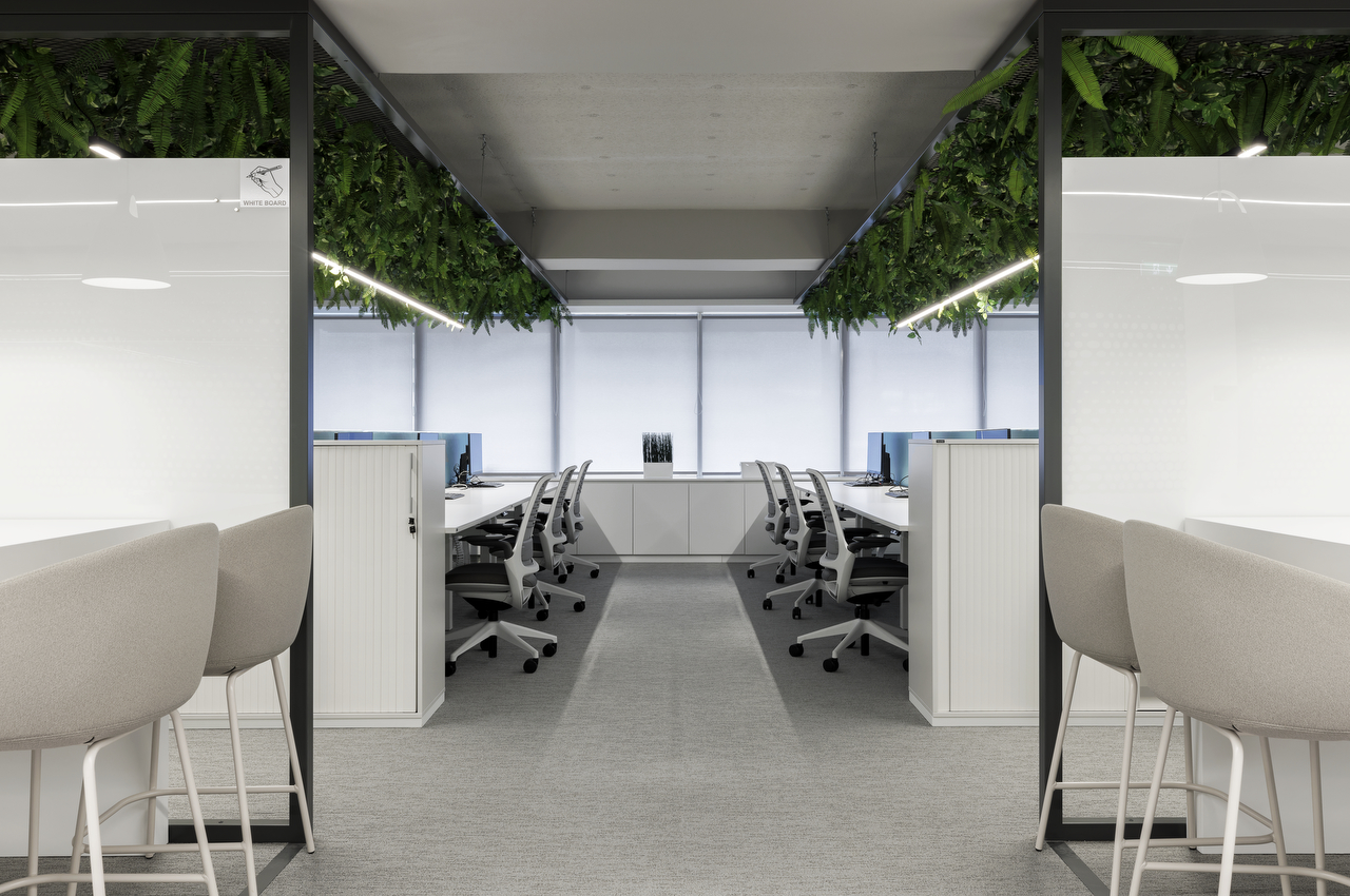 Oι θέσεις εργασίας εναλλάσσονται με ανοιχτούς χώρους συνεργασίας και καθιστικά, banquettes, ψηλούς πάγκους εργασίας και phone booths για να παρέχουν πολλαπλές δυνατότητες εργασίας. Το μεγάλο lounge στο χώρο εισόδου και υποδοχής, μετατρέπεται εύκολα στο townhall της εταιρείας, όταν υπάρχει ανάγκη μεγάλων συναθροίσεων. Η υλικότητα δίνει έμφαση στα οικολογικά υλικά, στην ακουστική άνεση, στην οπτική σύνδεση ανοιχτών και κλειστών χώρων και στην αίσθηση του ανήκειν.
