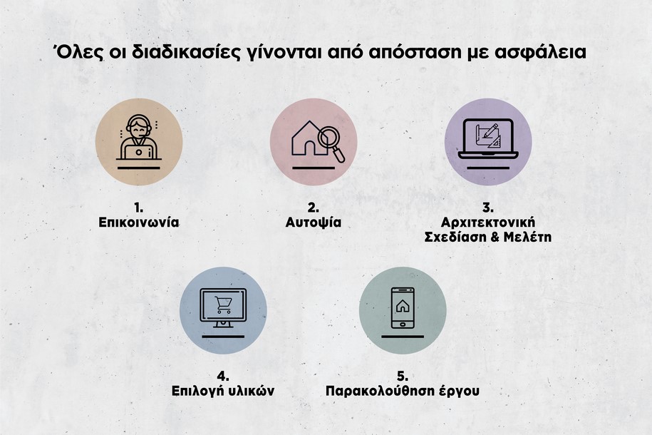 We offer the easiest and safest renovation procedure ever. Using a new system based on the planning and methodology of EPIKYKLOS Company, combined with the online project management application that over the years offers the most efficient control of our construction sites, we provide the ultimate solution in a period when most transportations and meetings are unachievable.
