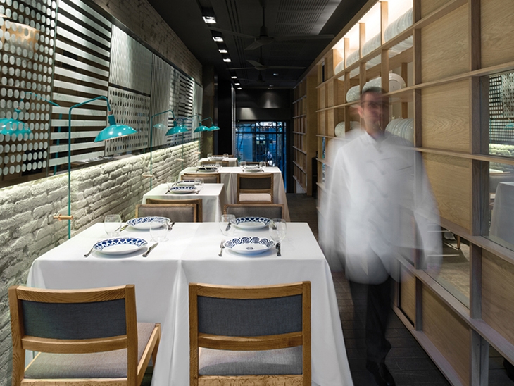 Lagranja creates a relaxed contemporary atmosphere for Michelin starred chef Nandu Jubany’s new restaurant. Located in the very heart of Barcelona – part of the Majestic Hotel Group – Petit Comitè offers Catalan classic cuisine with a contemporary twist.So does the design, mixing a few interesting ingredients: A huge wooden dish drainer – used as a screen – gives privacy to the main dining room, keeping the busy tapas bar apart. Two unexpected geese – the chef’s new mascot – welcome the customer at the entrance. A playful touch in a sophisticated high end restaurant. Last but not least, lagranja pays homage to the recently deceased Rafael Marquina transforming his iconic oil/vinegar set into a lamp.