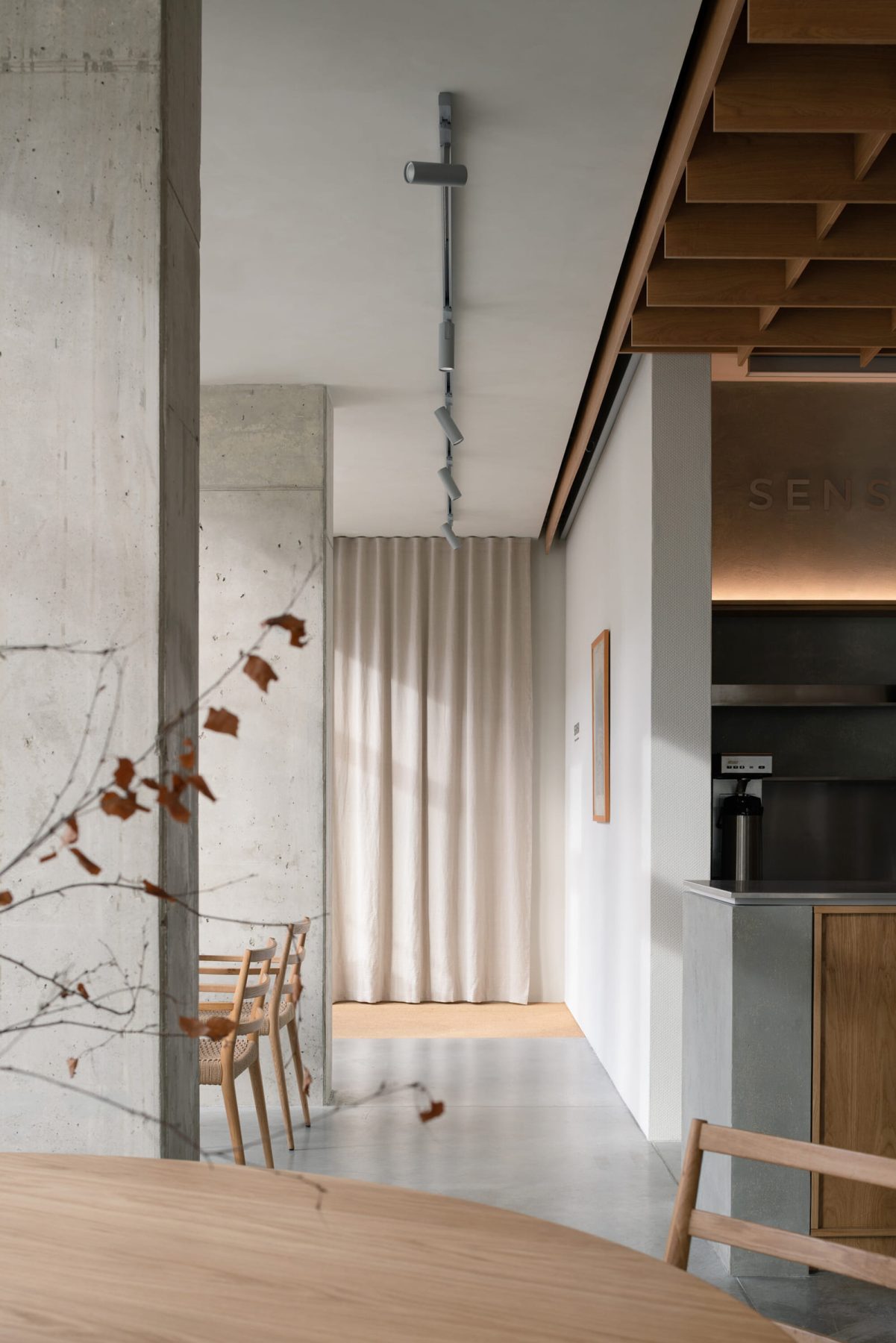 From the dilatation in the concrete floor to the stainless steel drip edges. Throughout the design process, the exceptional approach of the investor, who, among other things, went to Japan to establish relationships with local tea growers, gave the whole endeavour a drive with his commitment to unconditional quality.
