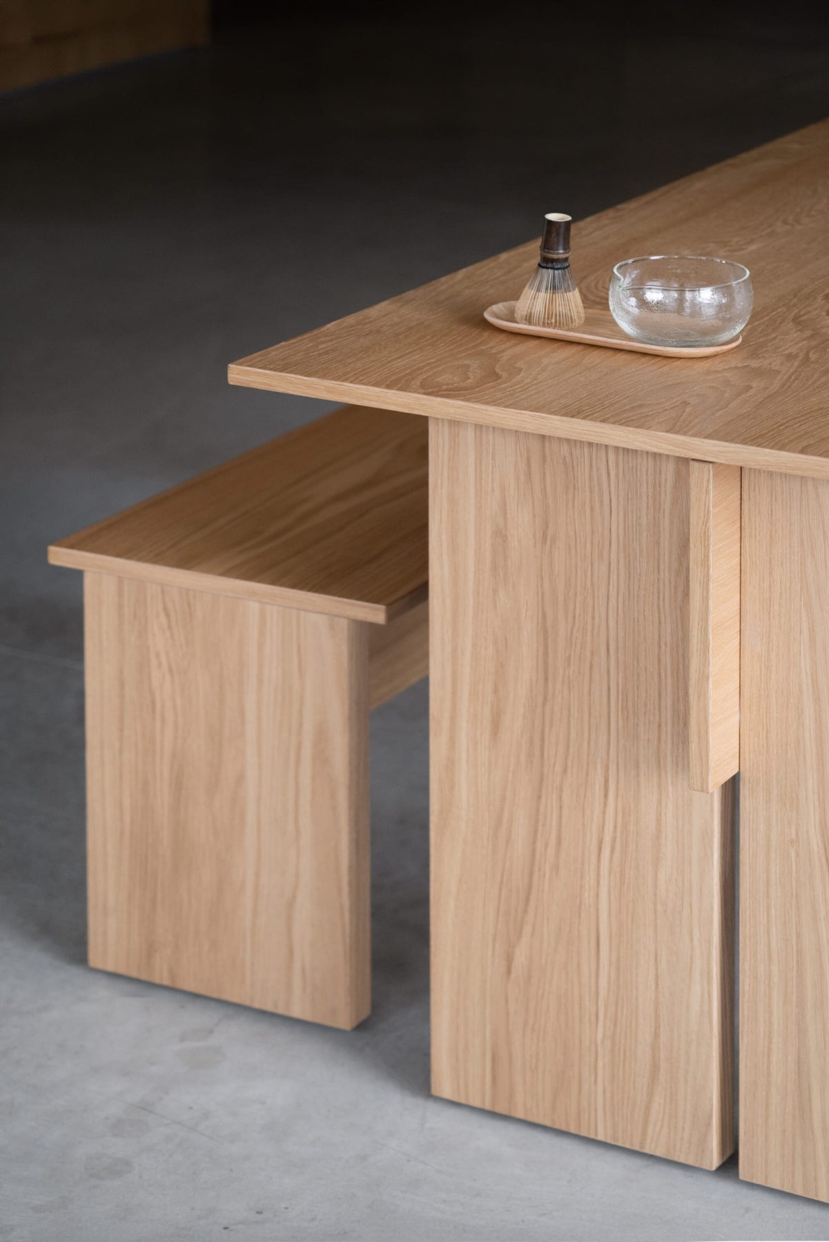 We also designed our own family of tables and benches for Sensu—a round table with a diameter of two metres, rectangular tables for four people and a bar table next to the entrance.