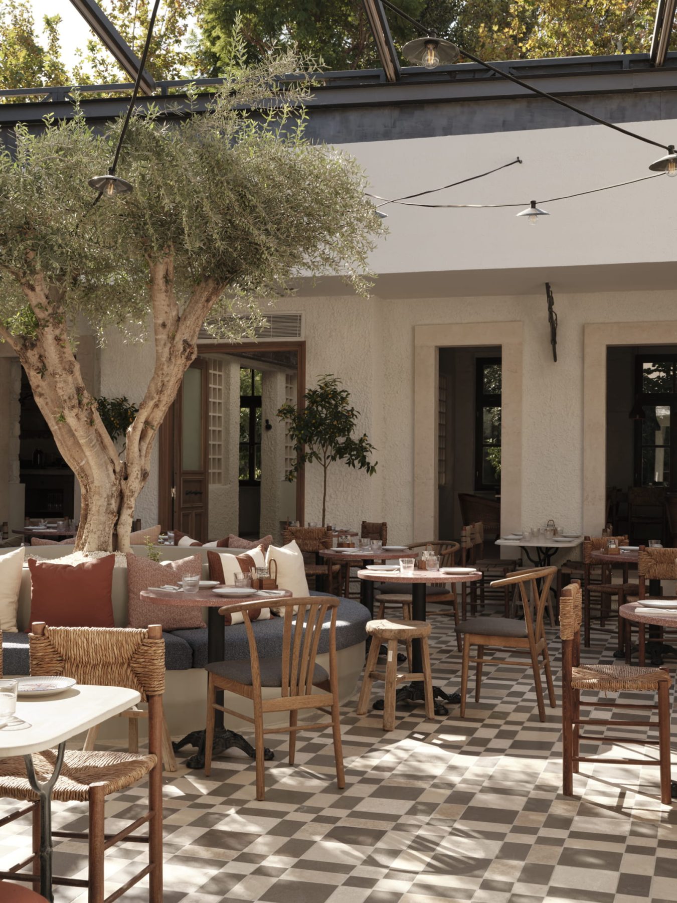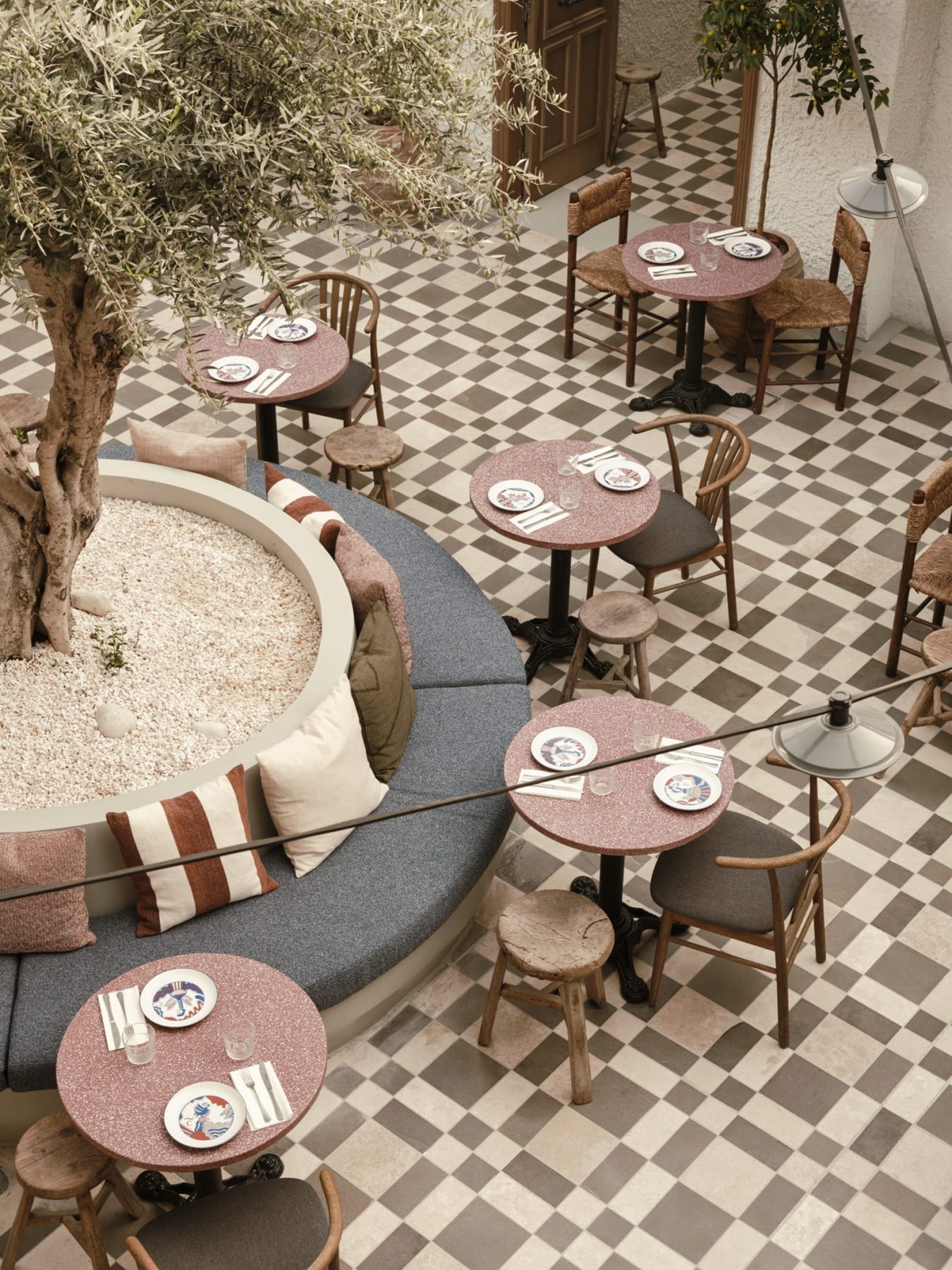 Cinapos restaurant by STONES AND WALLS has been honored with an Award in the Food & Entertainment category of the Interior Spaces and Lighting section at the GRAIL Awards 2026. Located in Thissio, the restaurant occupies a historic building deeply rooted in the neighborhood’s collective memory, conceived to evoke the atmosphere of a Sunday family gathering. Guided by a commitment to authenticity, the design strips away previous interventions to reveal a contemporary dining experience articulated through a sequence of interconnected spaces, unified by a central patio anchored by an olive tree. A distinctive artwork by Anna Mentogianni, together with carefully curated antique pieces, enriches the warm, intimate ambiance crowned by the open Athenian sky.