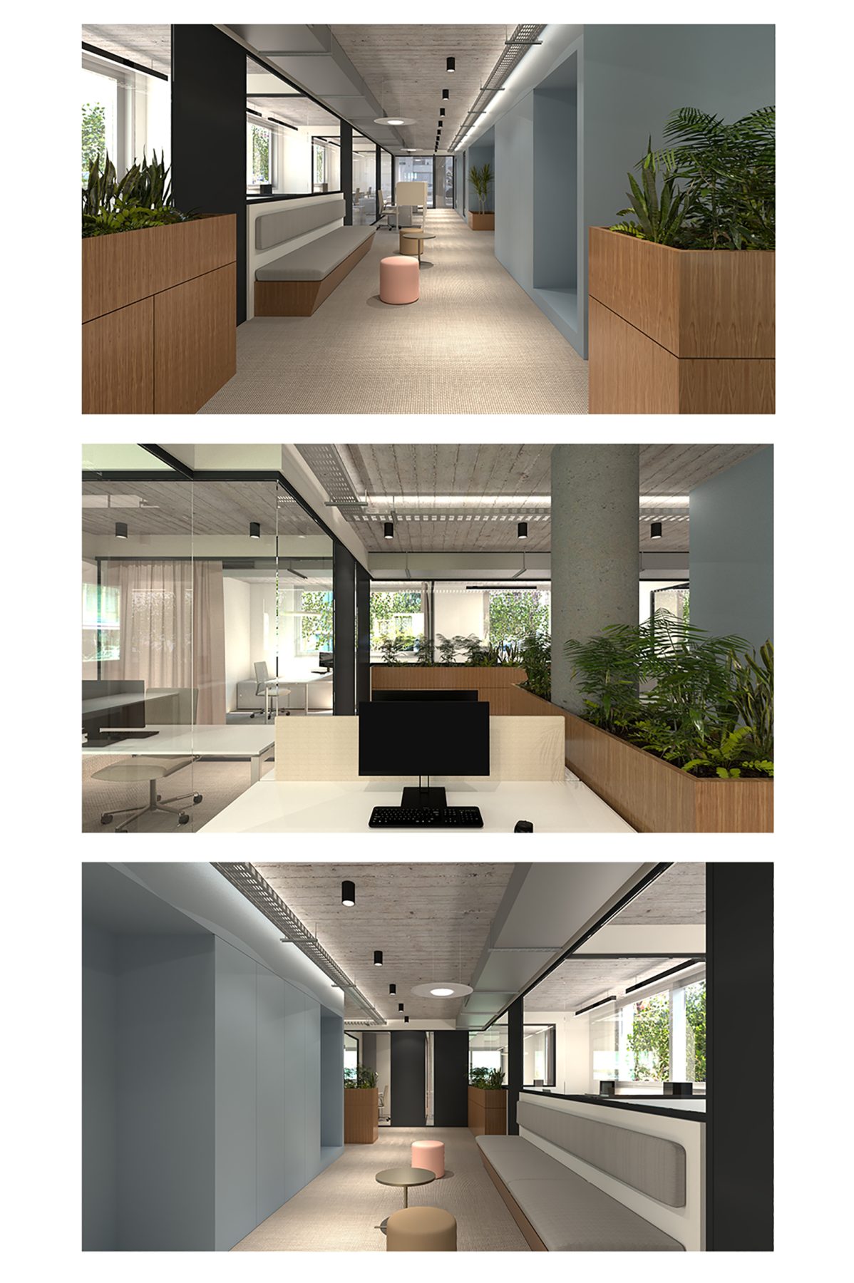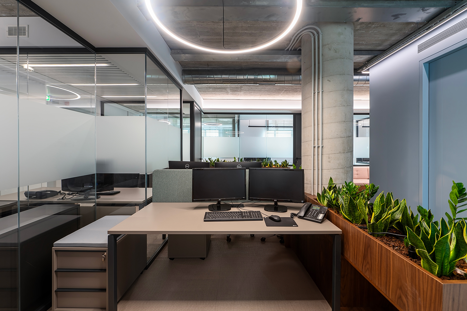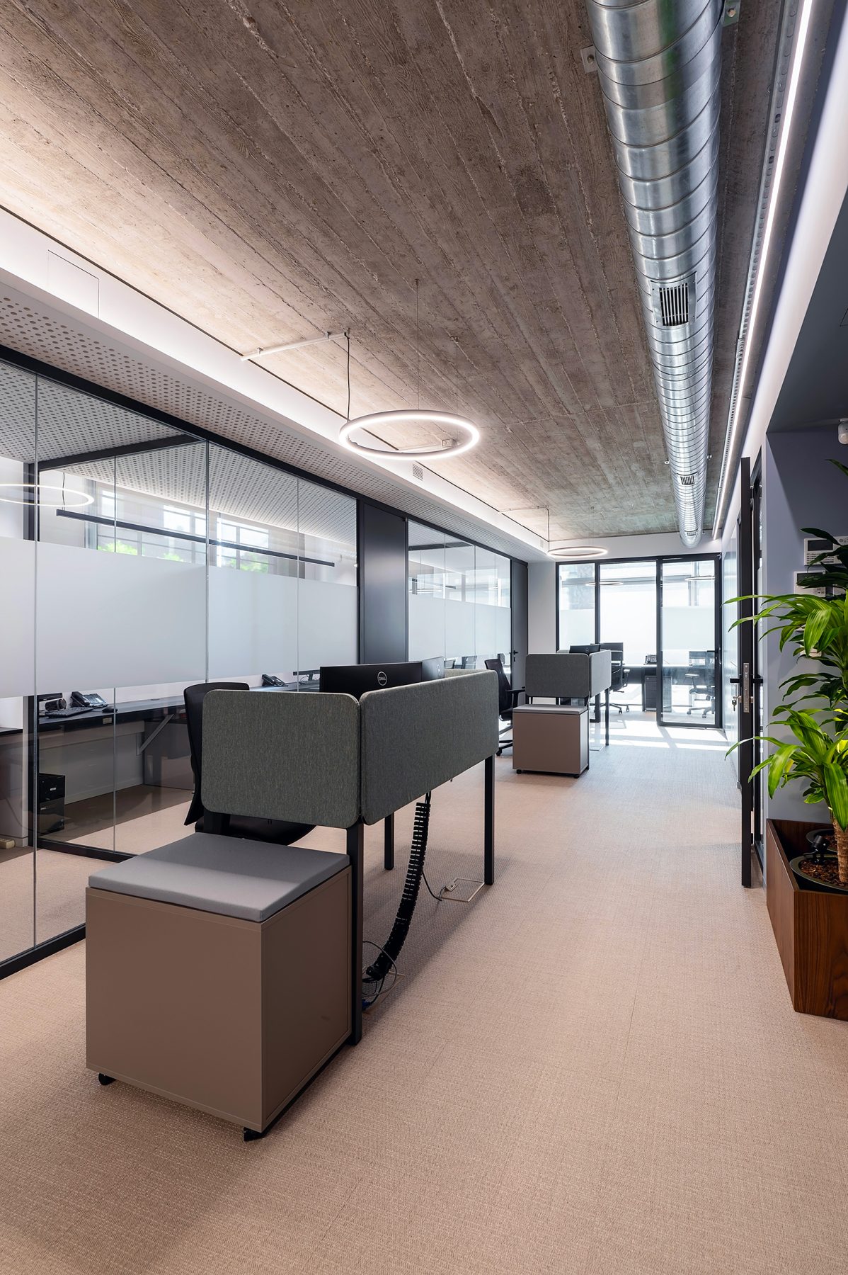 to meet the employees’ needs for comfort, sound insulation, collaboration and communication, flexibility, as well as to provide the necessary storage spaces.