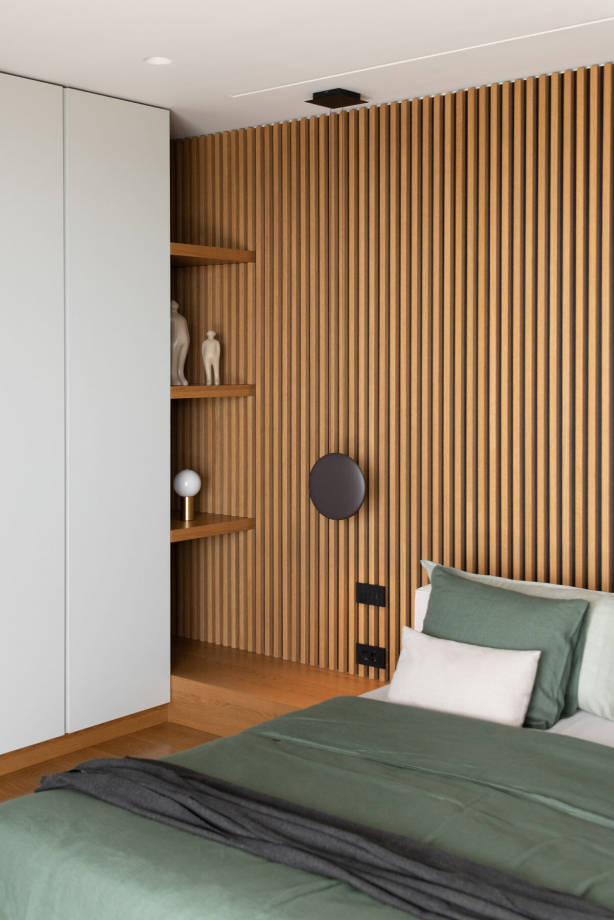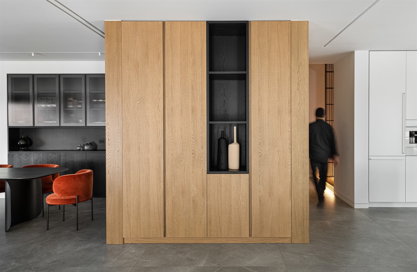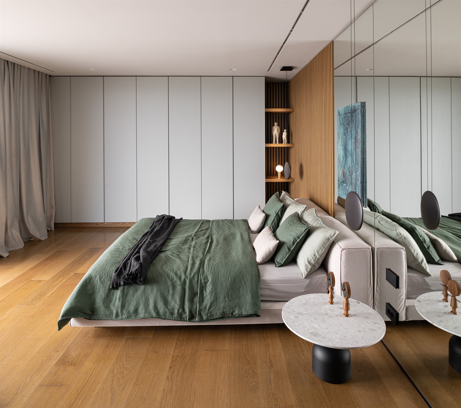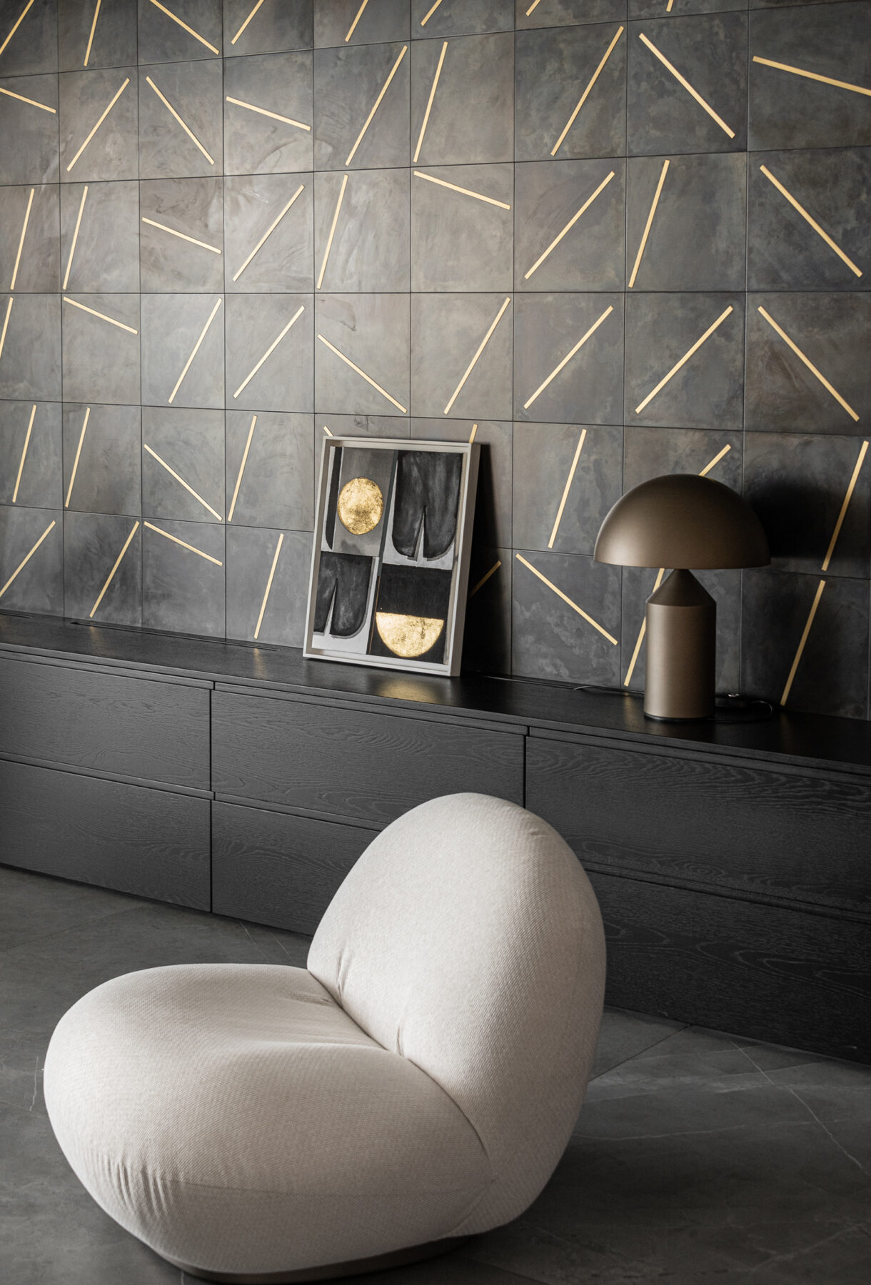 The overall goal of the redesign was to create a residence that will offer the experience of luxurious living, which is achieved by clear functional choices, spacious interior layout, with a simultaneous cozy and minimal aesthetic both through the furnishing and the choice of all basic cladding materials such as, the oak wood, the gray marble, the gray-beige shades in the upholstery of the sofas.