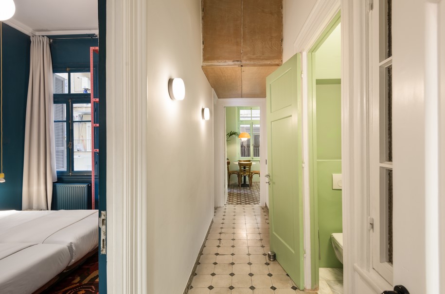 Τα αυθεντικά Αρτ Ντεκό στοιχεία του διαμερίσματος – όπως τα ξύλινα δάπεδα και τα δάπεδα από τσιμεντοπλακάκι, τα εσωτερικά και τα εξωτερικά μασίφ ξύλινα κουφώματα, οι γύψινες διακοσμήσεις στις οροφές – όλα διατηρήθηκαν και ανακαινίστηκαν.