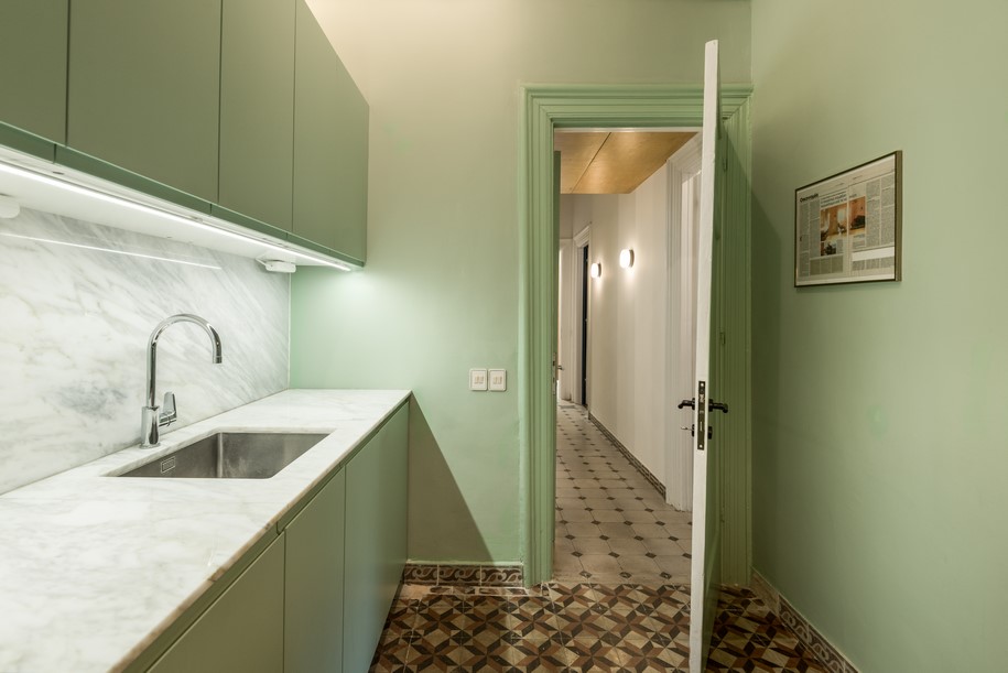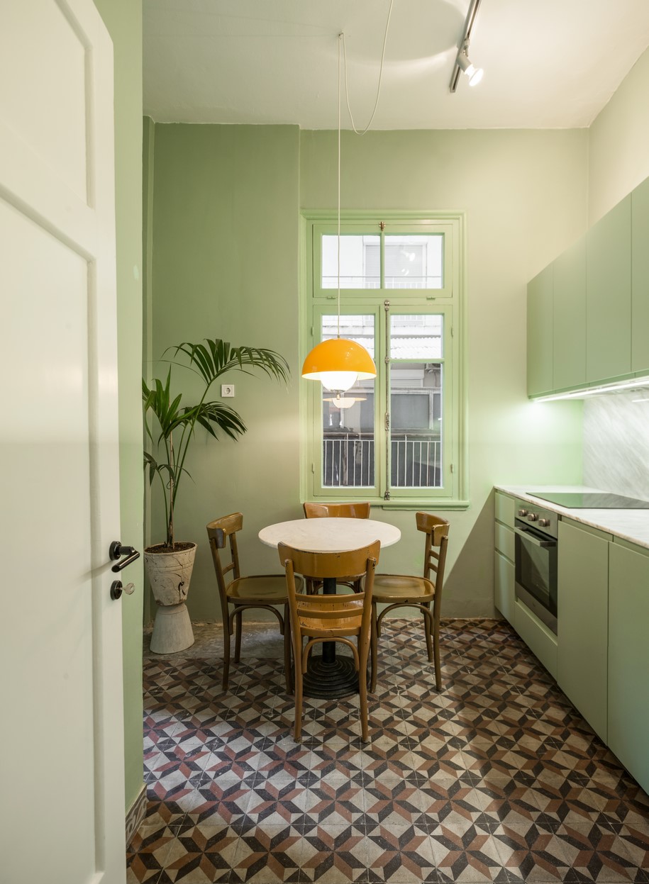 While the layout of the apartment was not changed during the renovation, Giannikis fitted an entirely new kitchen, shower room and WC with new flooring and sanitary fittings.