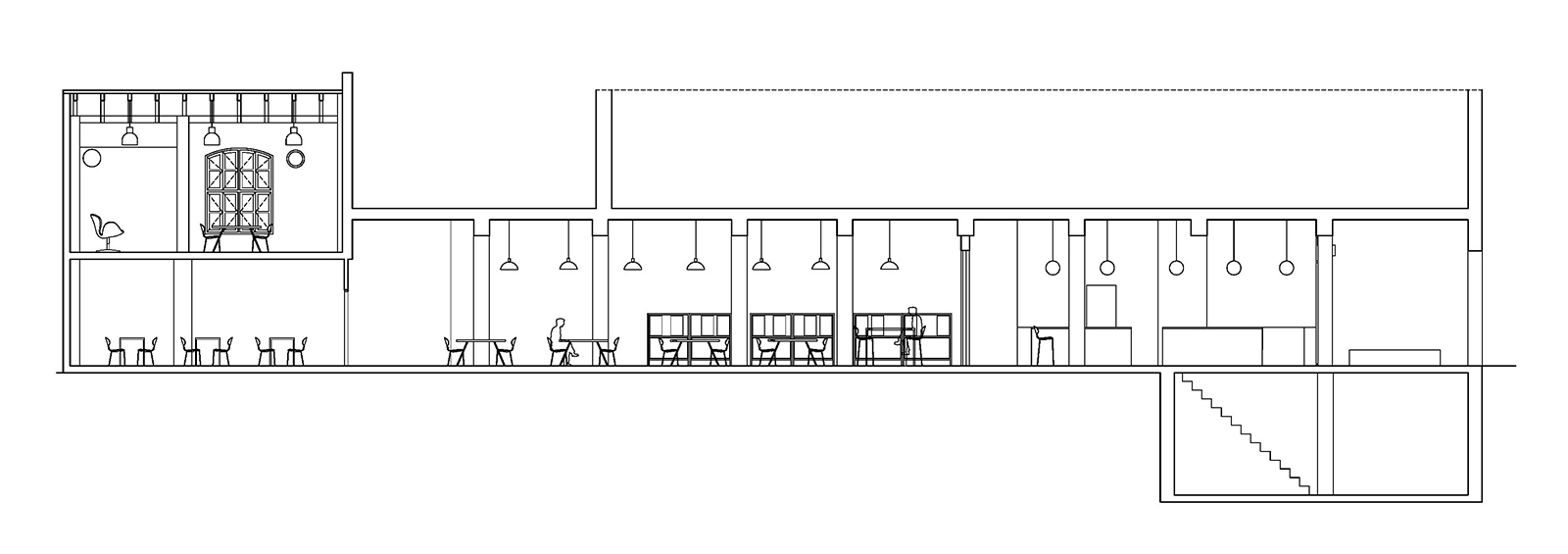 The cafeteria becomes a crucial element of the intervention, not only as a meeting place between coworkers, but with the neighbourhood too.